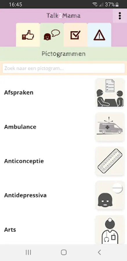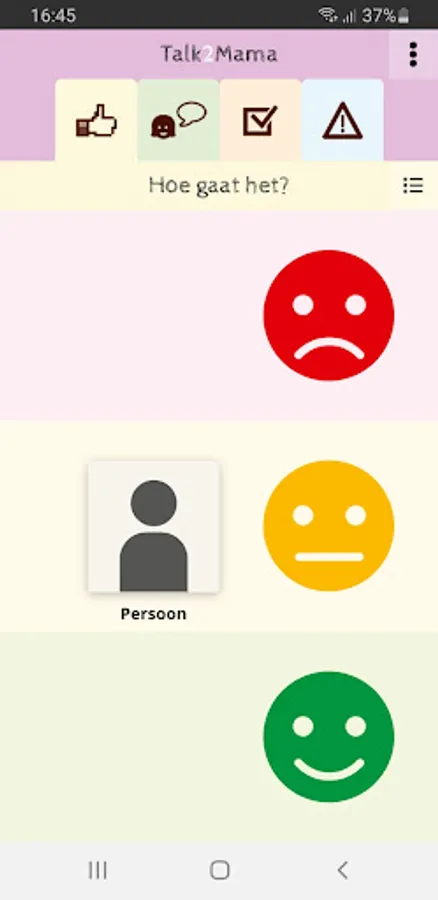 With Talk2Mama you can use scale questions, checklists and visual stories to clarify what a mother-to-be can expect during pregnancy and childbirth. With the pictograms at the LVB level you can create a customized cartoon for the client.