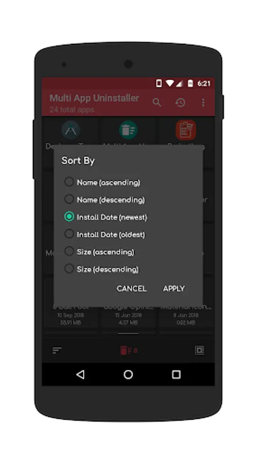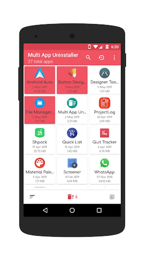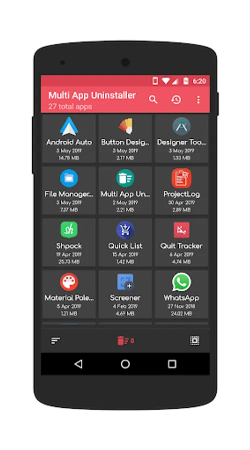 Uninstall multiple apps from your device simply and quickly from the list of user installed applications.