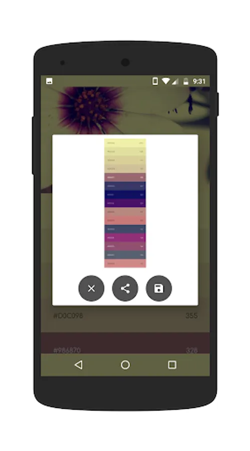 You can save the palette directly to your devices storage or share the image with other apps and friends.