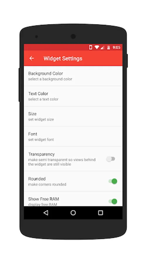 A simple, neat movable floating widget that displays free and used RAM information.