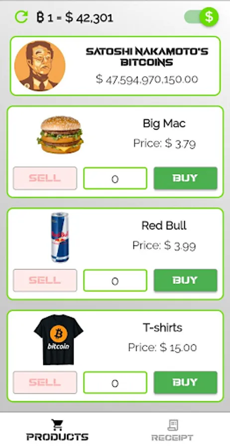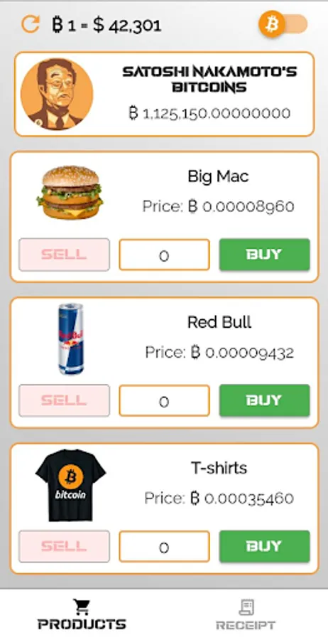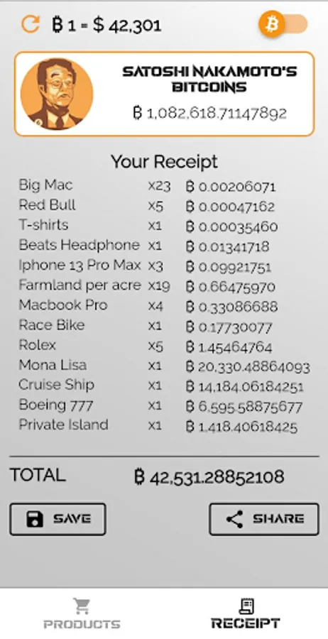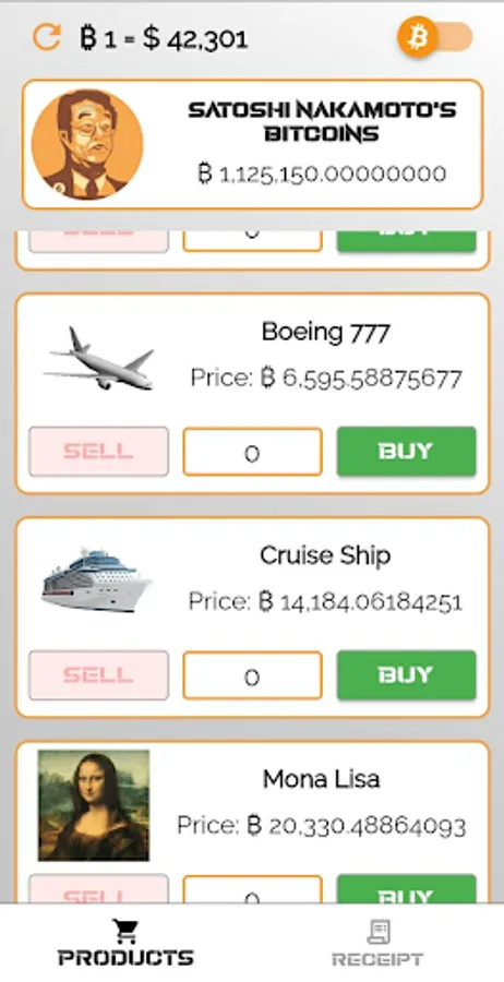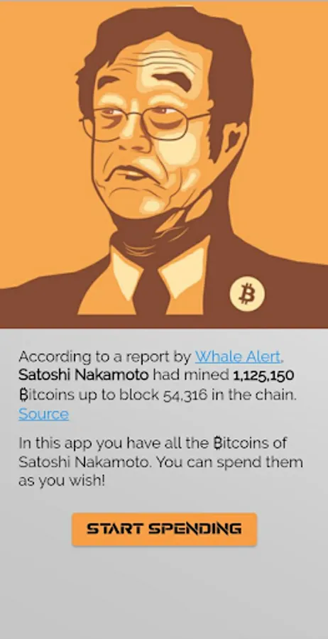 In this app you have all the Bitcoins of Satoshi Nakamoto. You can buy a house, a Ferrari, or a luxury yacht. Spend them as you wish!