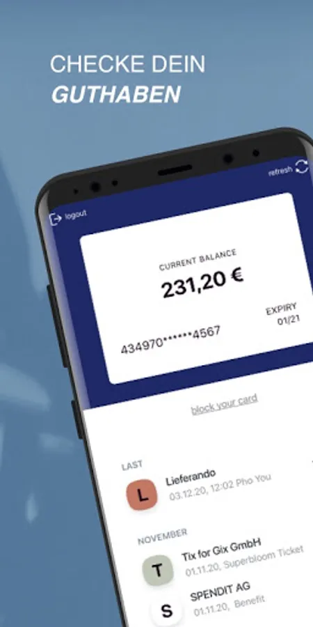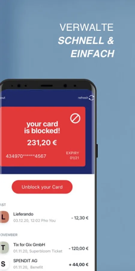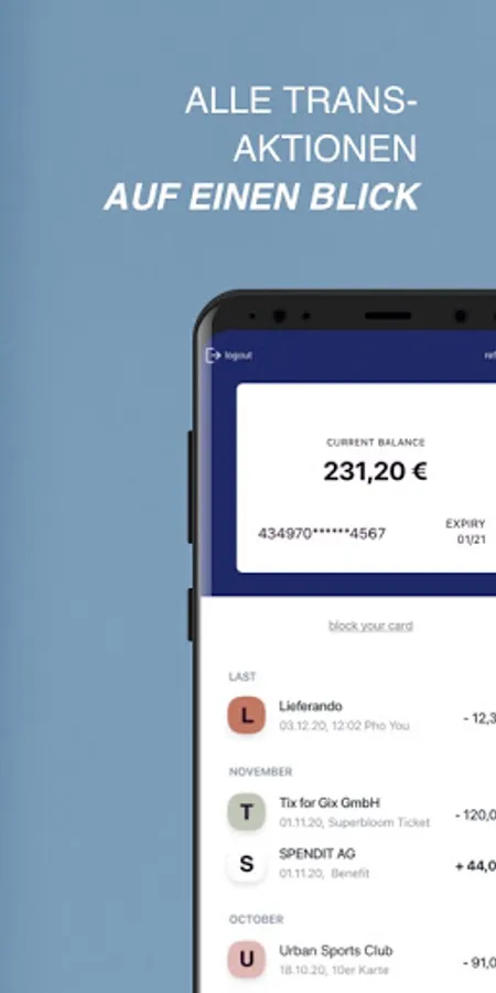 Everything at a glance - the SpenditCard app for all Visa SpenditCards starting with 481069