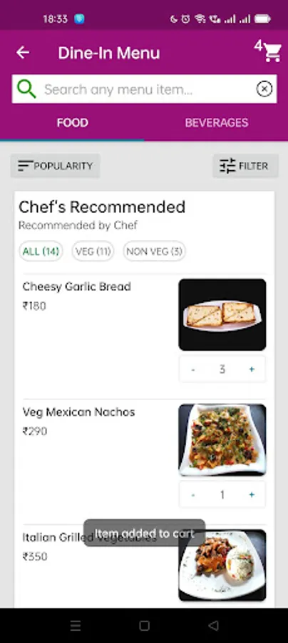 SpeQue Dine-App has the dine-in digital menu of the restaurants. Guests can browse the digital menu with all the details and easily place order