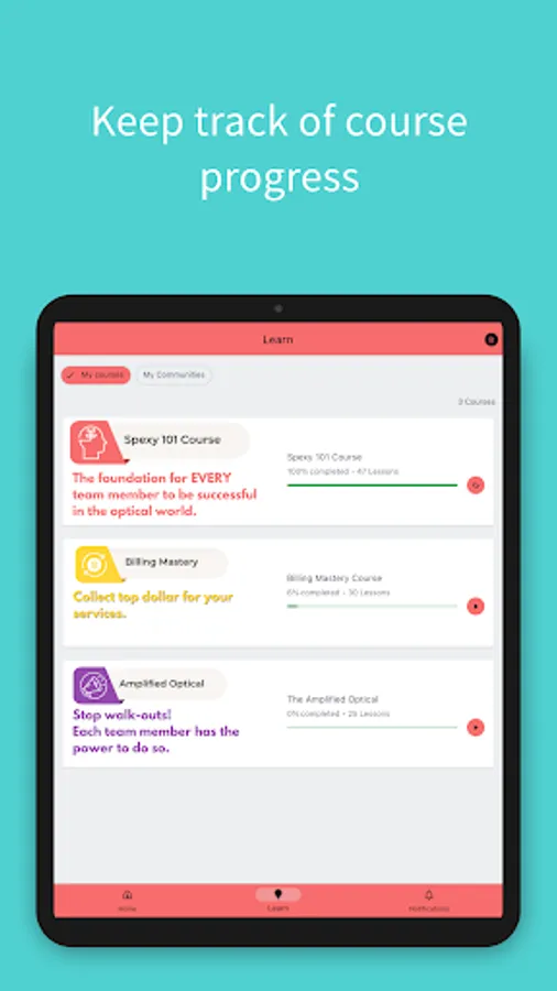 With the Spexy Optical Learning mobile app, enjoy the freedom of learning and connecting anytime, from anywhere. Access your favourite courses and communities, from one convenient place.