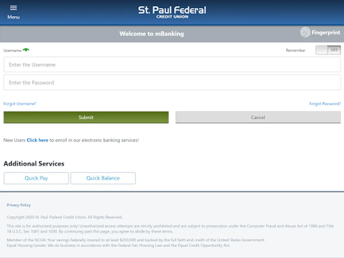 To use the St. Paul Federal Credit Union FREE mBanking app, you must be member