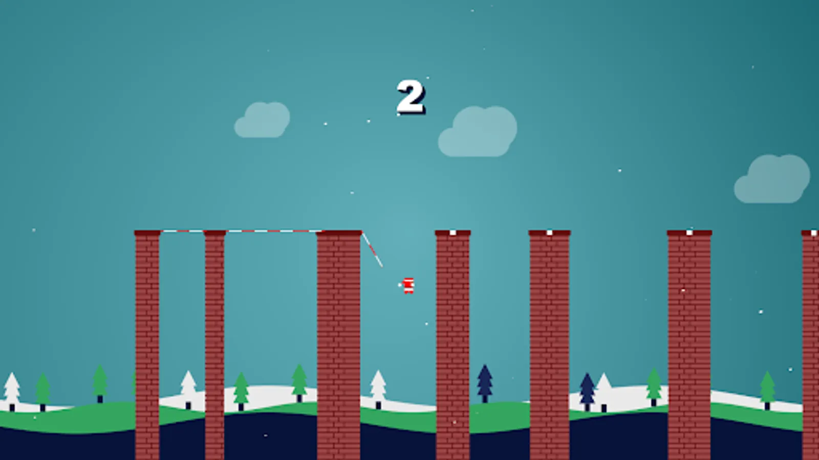 You can walk to the next column with the candy cane in the hero's hand, but the length of this cane is not constant, the length of the cane grows with the time you touch it.