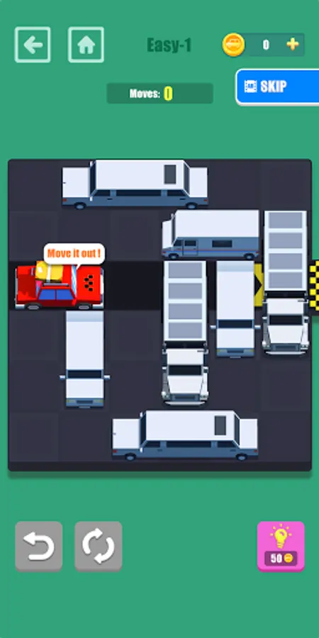 Move It Out is a kind of super funning puzzle game. You should try to open up your mind and find a way to move your car out. The car can move up and down, left and right to create a channel,let your car out.
