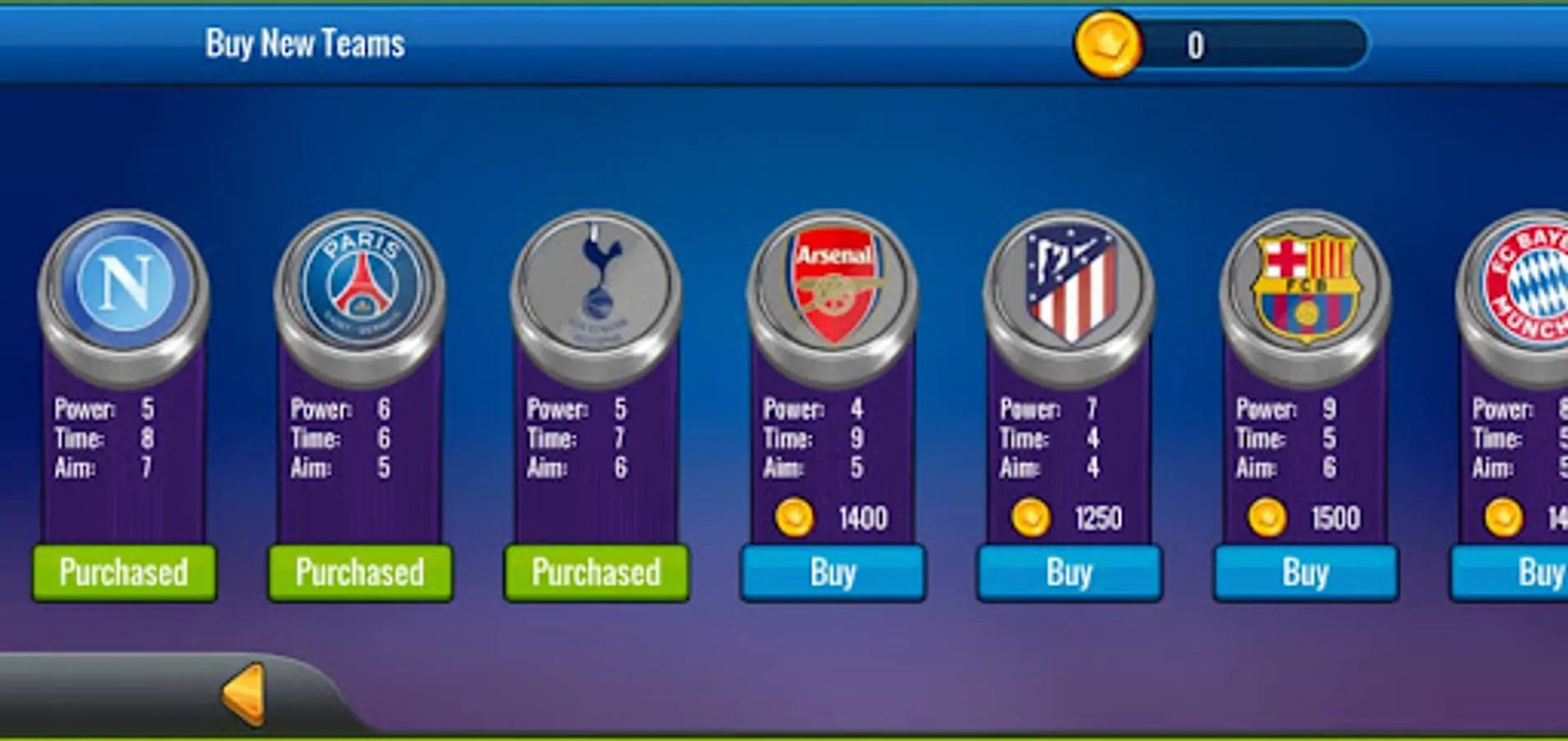To open European club teams, you must first defeat all the national teams to open the Iranian club, then you must defeat all the Iranian club teams and buy until the European club opens.