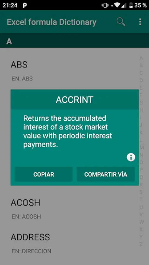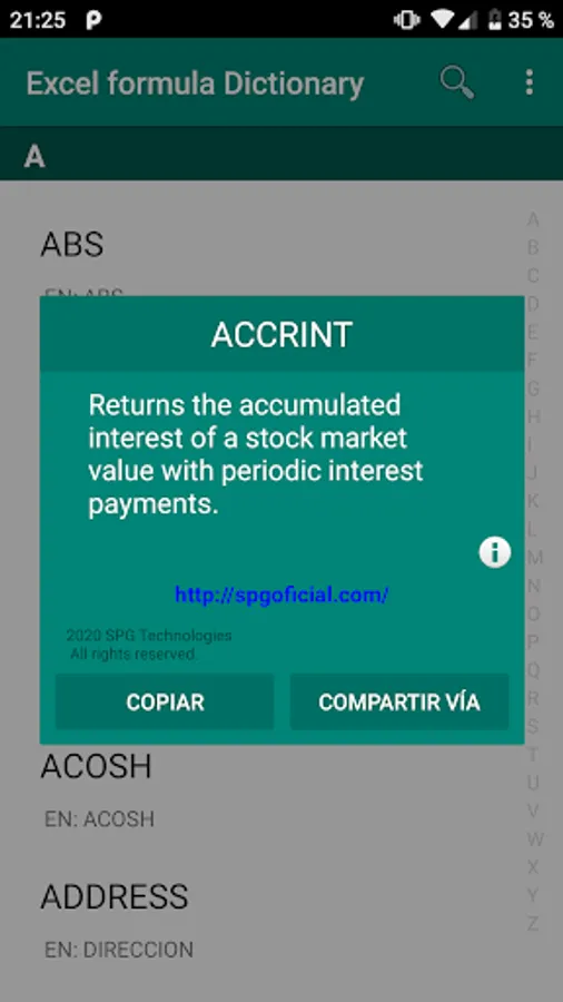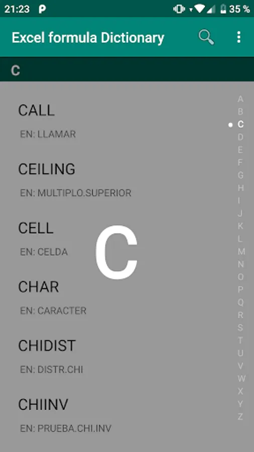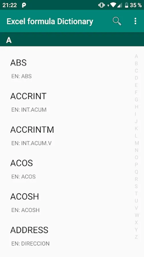 This application allows you to access in a simple and practical way the essential formulas to use in Microsoft Excel; as well as discover its meaning.