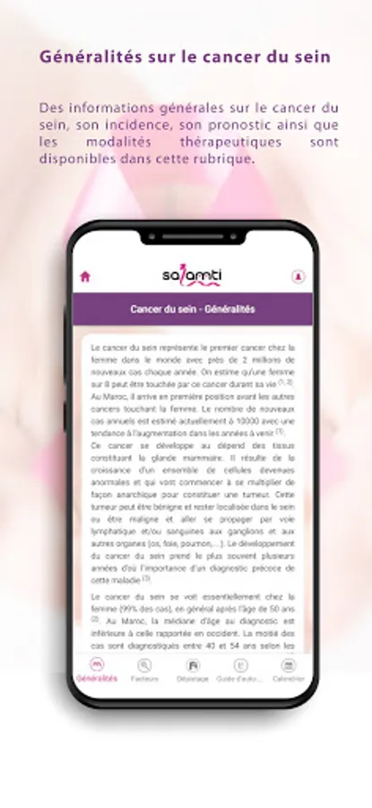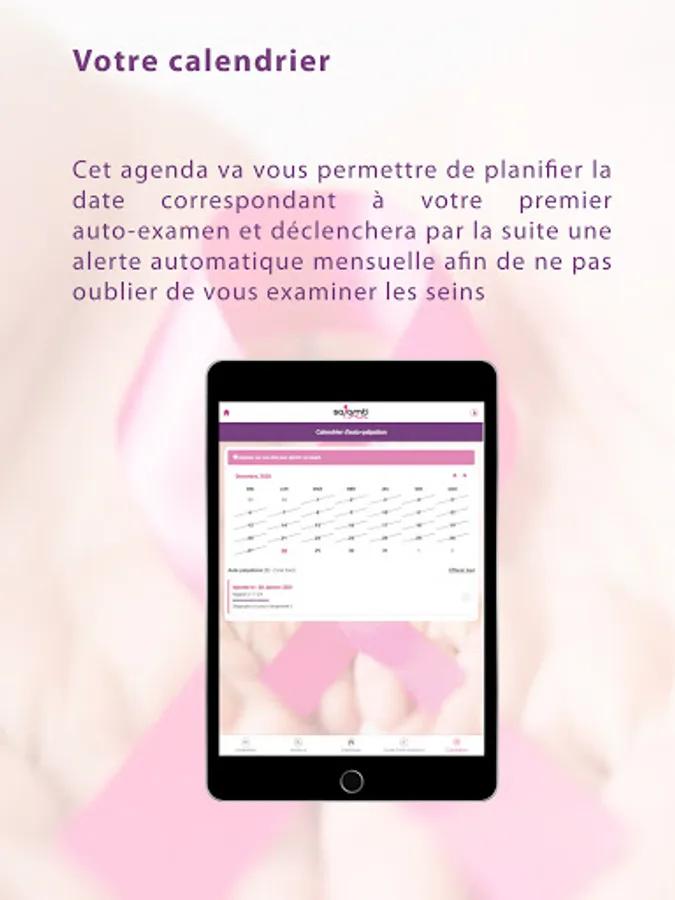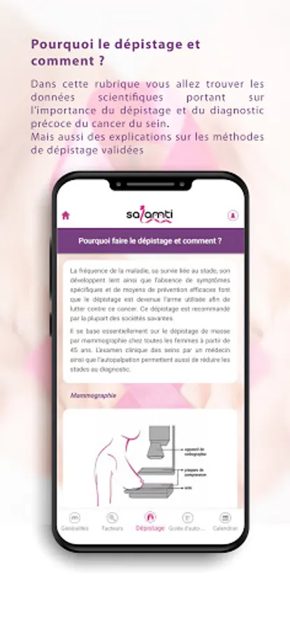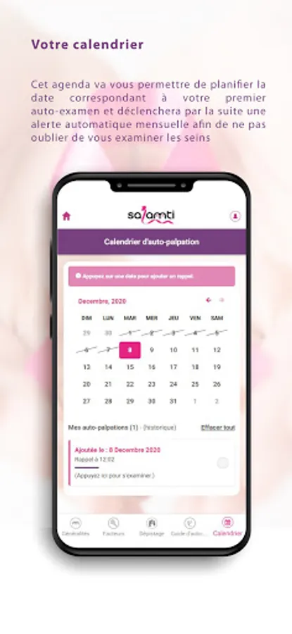 Salamti is a free application designed to introduce you to breast self-exams and also to remind you to do it every month. It is intended for all women from the age of 20. Its purpose is to teach you to get used to the anatomy of your breasts so that you can detect any abnormalities early on and alert your doctor to take it.