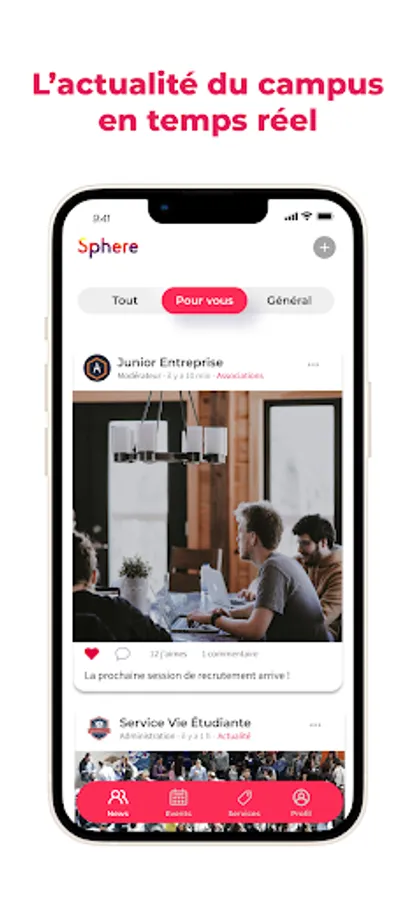 With Sphere, live a new experience of student life and stay connected to your campus.