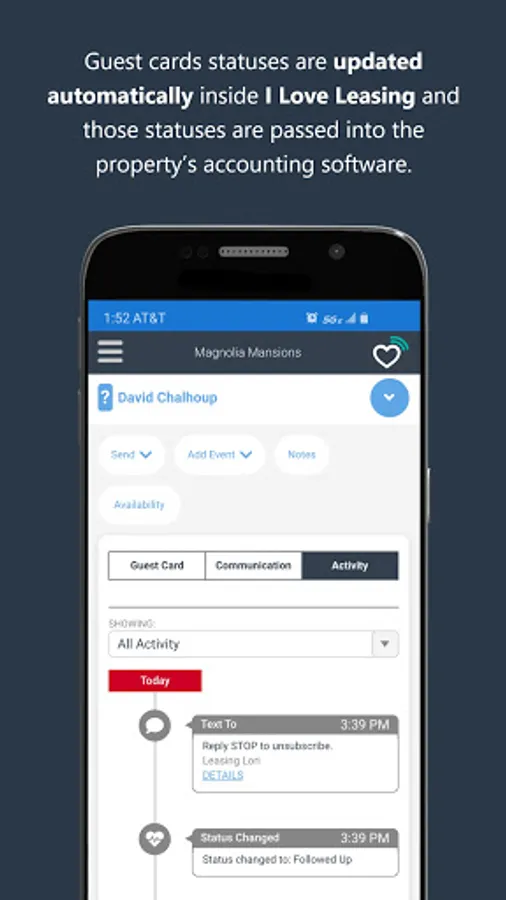 I Love Leasing is a customer relationship management (CRM) software designed exclusively for the multifamily industry. Apartment leasing teams can use our web-based software from a desktop, laptop, tablet or utilize our mobile leasing companion app! Agents can enter new guest card leads, respond to questions and nurture the lead via phone, text and email from their Apple iPhone. Our CRM lead management software is integrated with 400 vendors including all the top accounting software providers.