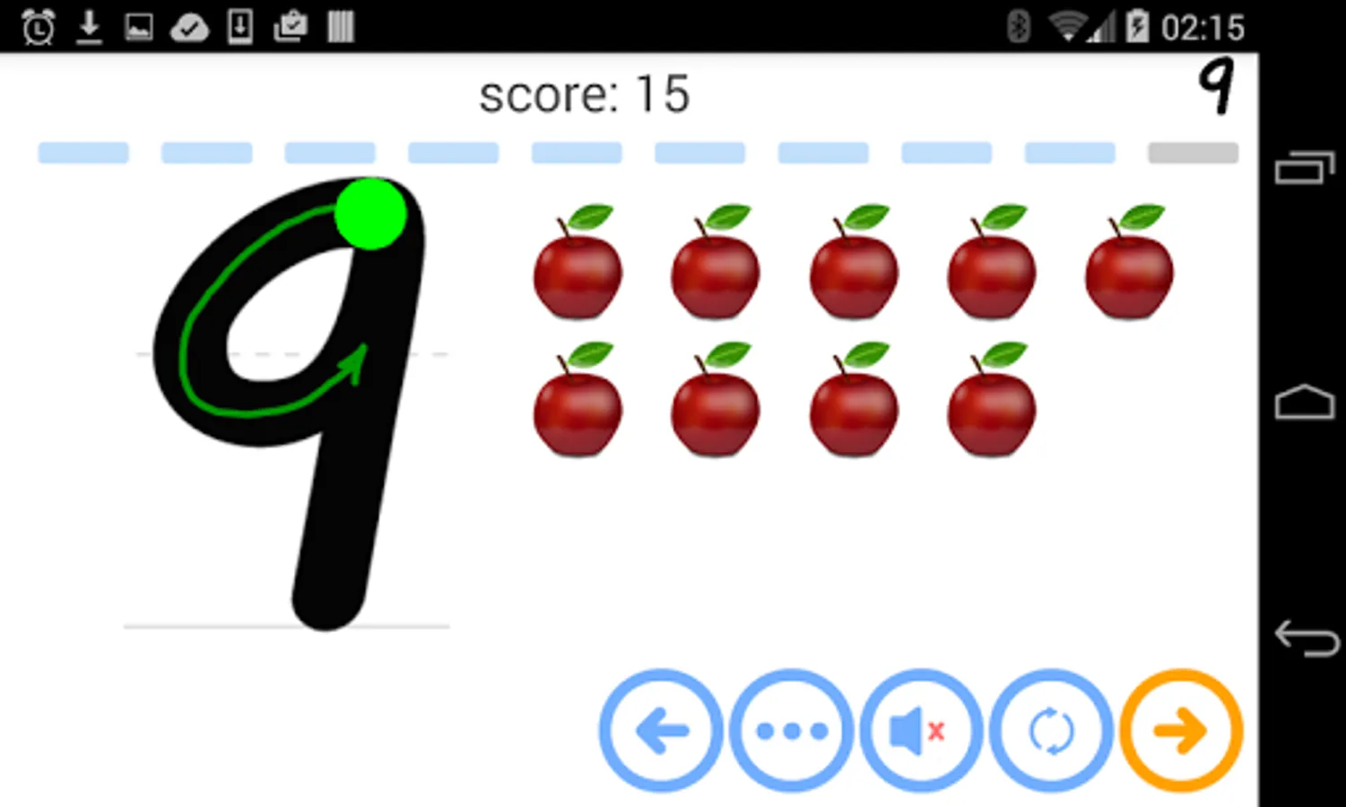 Fifteen levels of a game for of tracing digits and numbers. The game presents dynamic instructions for writing digits, direction of writing numbers. Checking accuracy, smoothness and speed of tracing and giving kids feedback. Children listen to the digits names in US English. Each number is accompanied by a picture with the corresponding number of items, so that children count the items and correlate the counted number to the name and way of writing. Enjoy and let us know your kids opinion :-) !