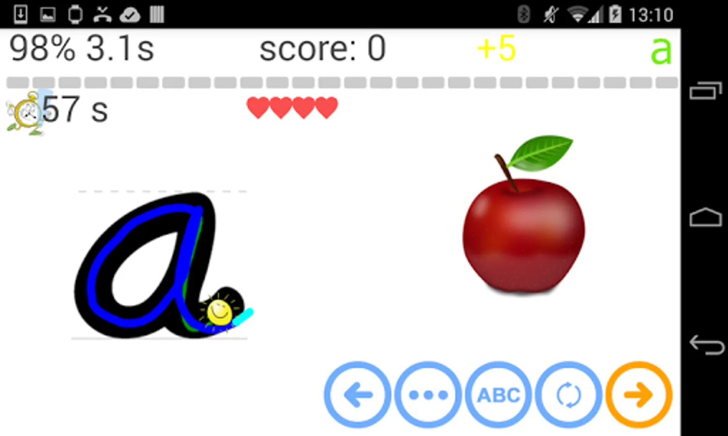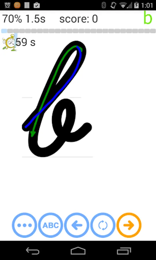 - Press on a letter in the upper right corner to get the letter name read for you.