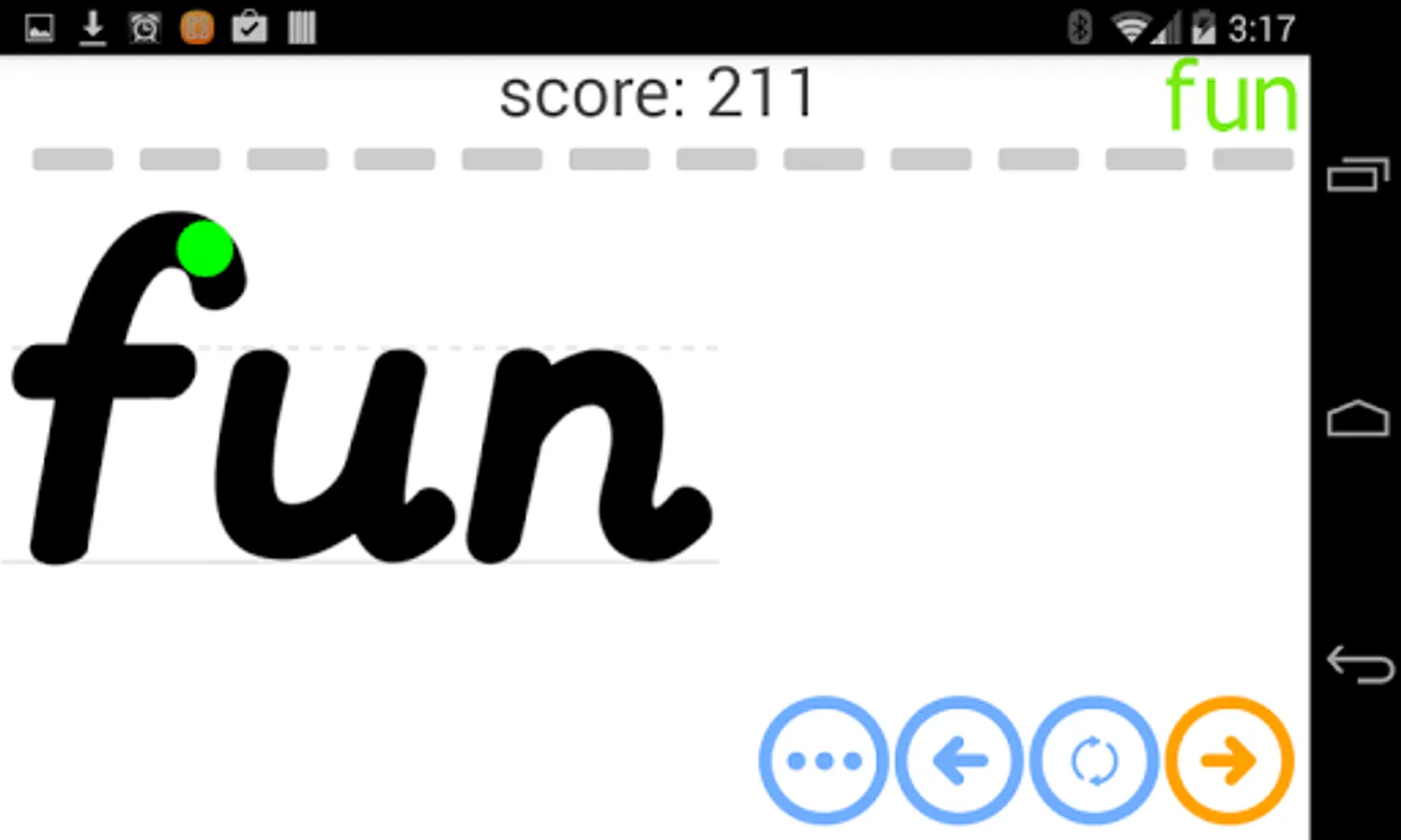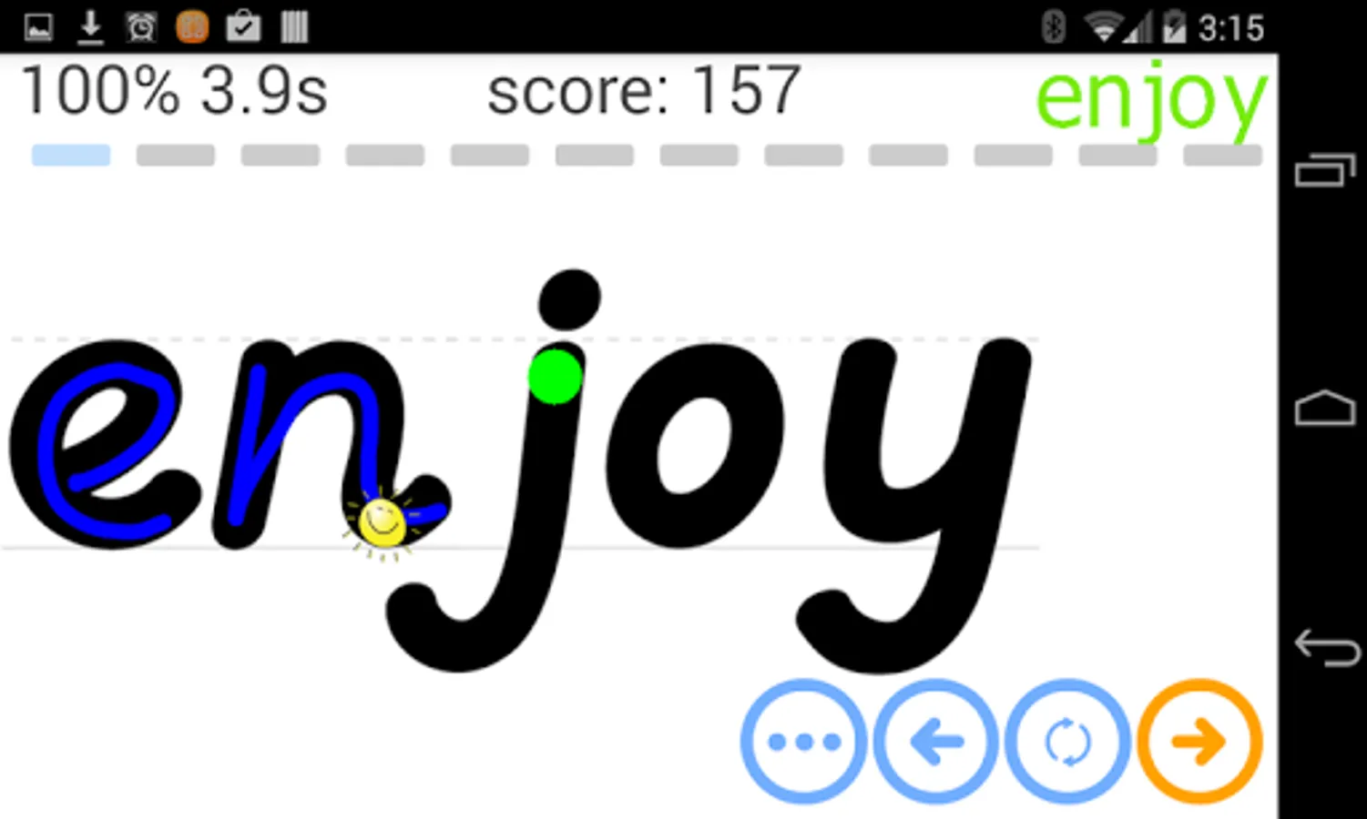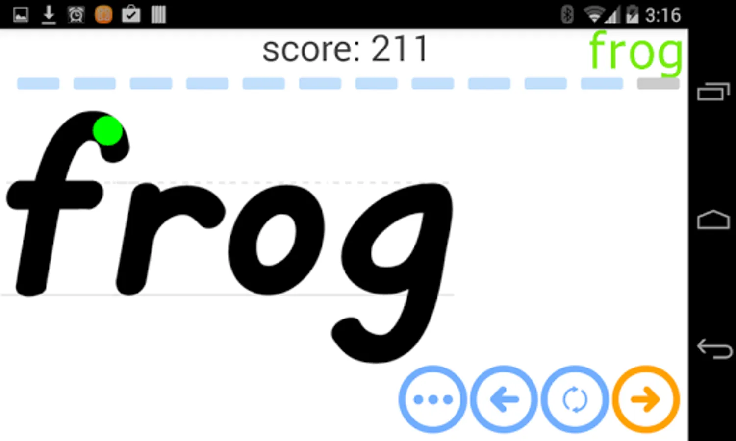 Tracing app for practicing handwriting, starting from letters with dynamic instructions, followed by simple words, cursive letters and joined-up cursive writing of simple words. Supports print, manuscript and cursive, upper and lower case. Enjoy. :-)