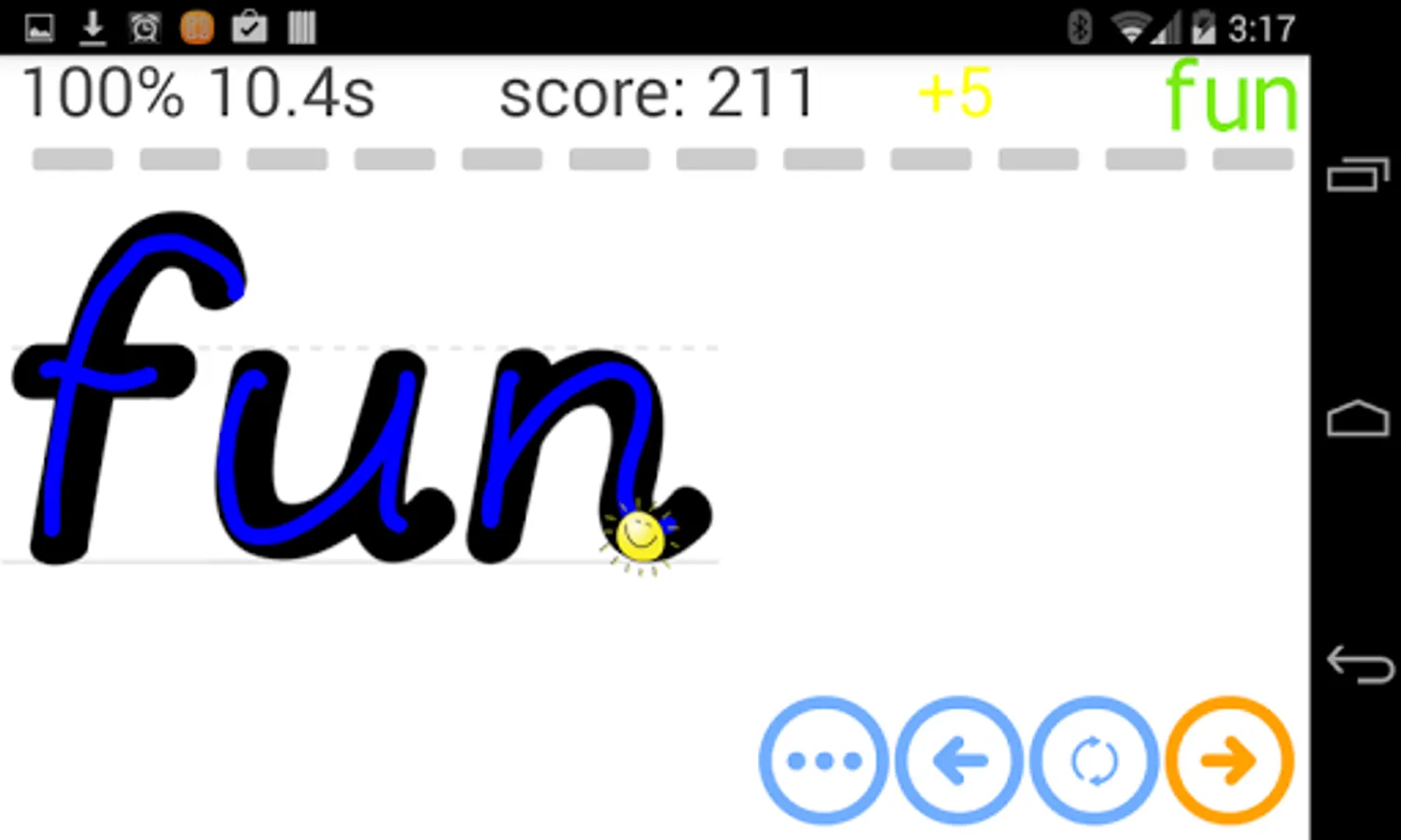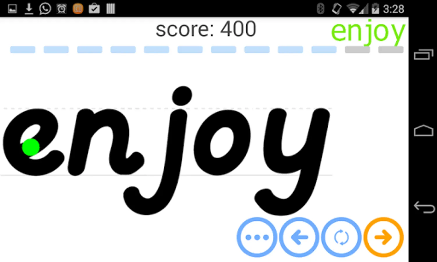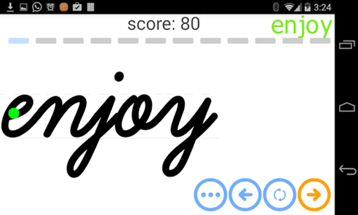 Tracing app for practicing handwriting, starting from letters with dynamic instructions, followed by simple words, cursive letters and joined-up cursive writing of simple words. Supports print, manuscript and cursive, upper and lower case. Enjoy. :-)