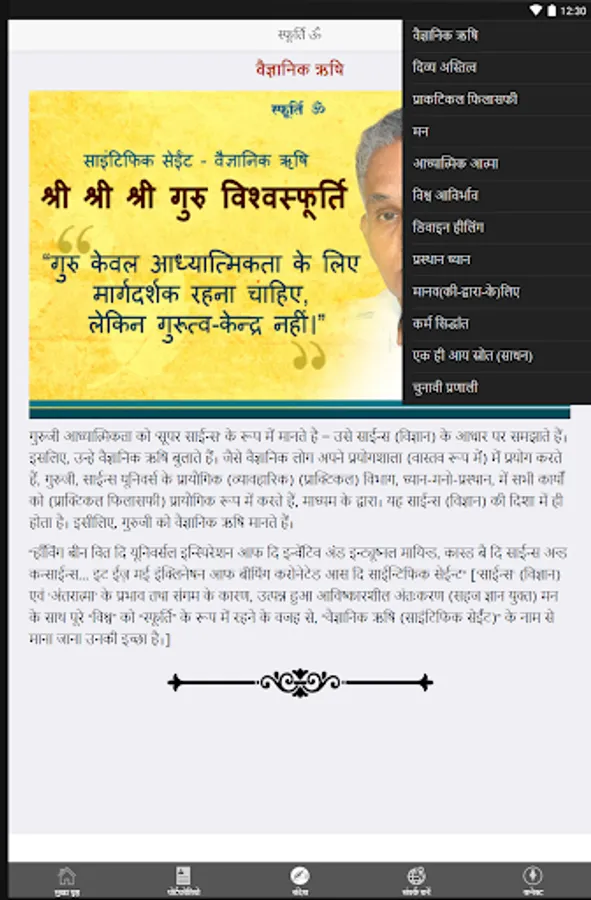He concept, "Practical Philosophy (Supernatural & Superhuman) based on Religious Humanism" is unique. He says that Spiritual Soul does not occur by birth but, is acquired through the process of DhyanaManoPrasthan by means of practice of Ascent Dhyana.