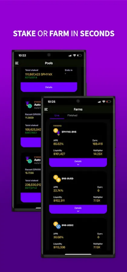 • Staking and Farming pools are available across many blockchains.