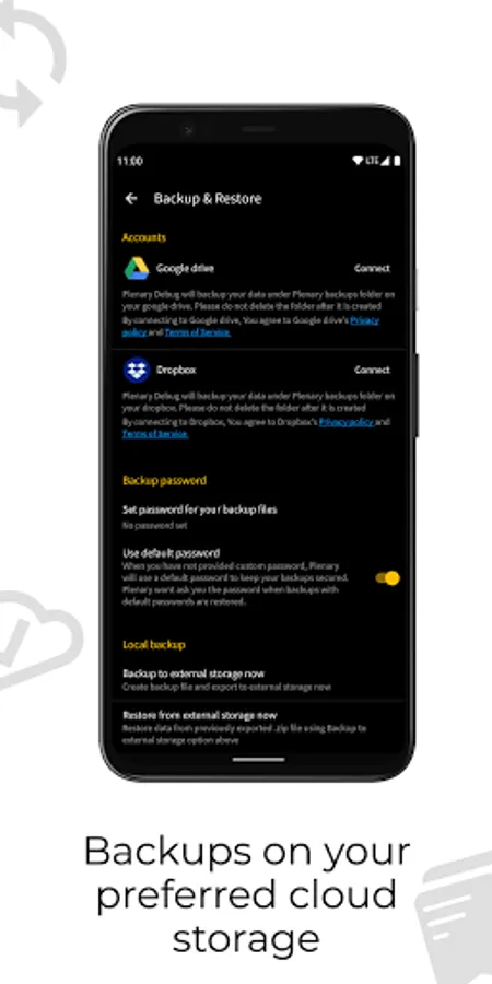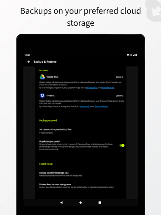 • ☁ Automatic Backup of data on Google Drive, Dropbox