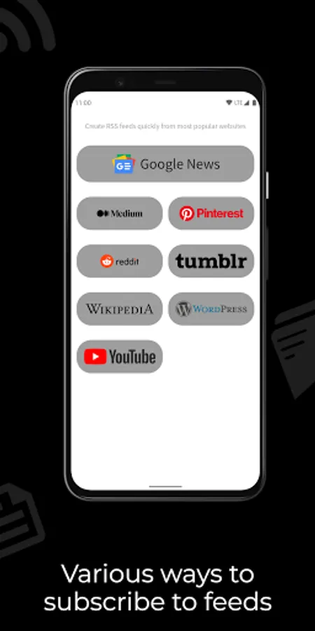Create your own RSS feeds from popular sites - Google News, Reddit, YouTube, Medium, WordPress, Wikipedia, Tumblr & Pinterest