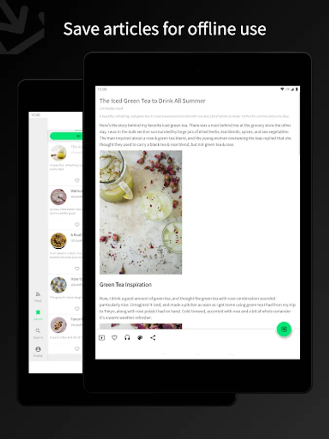 Feeds will be synced at your preferred interval if you are connected to the internet & you can access them anywhere offline. You can save the entire content of an article by tapping the save button to use the app as an offline news reader.