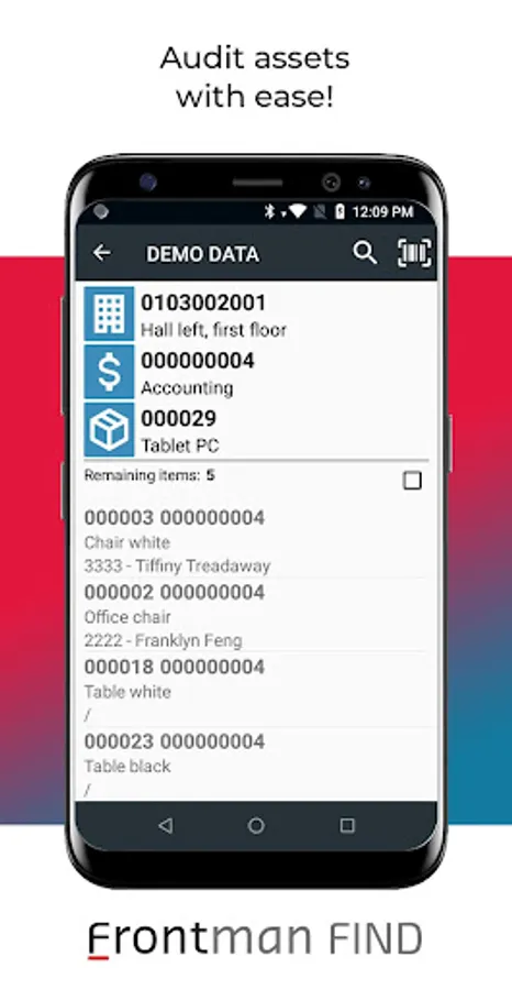 Frontman FIND is a professional solution for fixed assets inventory. It enables you to quickly and accurately audit your fixed assets using mobile devices.*