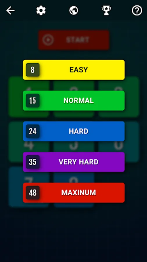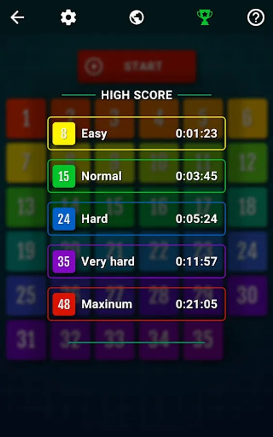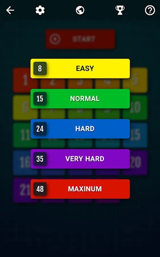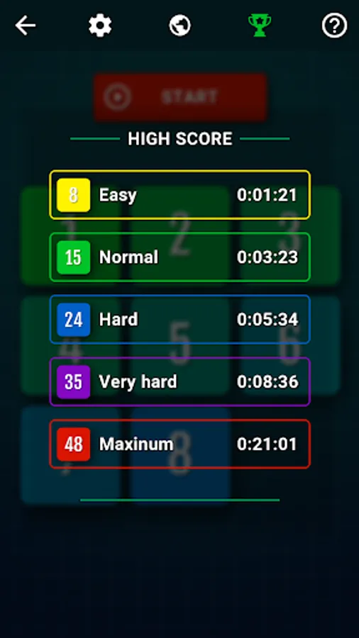 • Five game levels (from 3x3, 4x4, 5x5, 6x6 and 7x7);