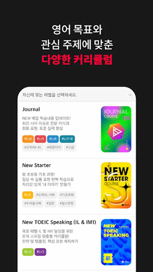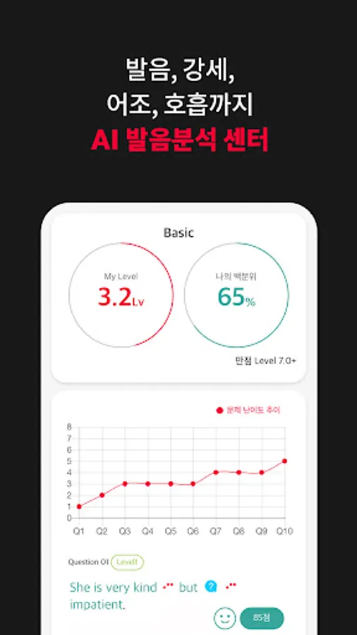 For those who are new to English conversation, we provide an AI level test that can be used unlimitedly for 24 hours. Listen to the sentences read by the AI tutor according to your level and evaluate your English listening and speaking skills. After the level test is over, we will provide you with recommended learning for each level and various benefits.