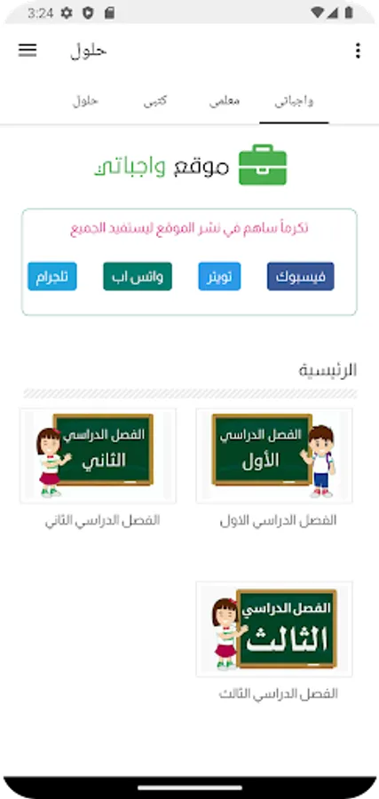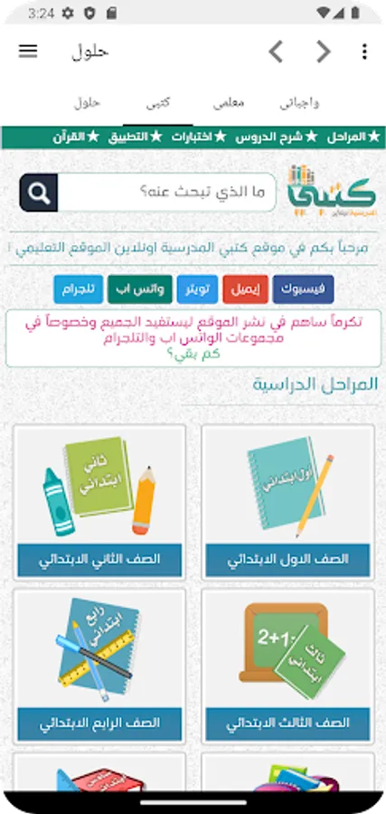 - My teacher solutions application, which provides you with a complete explanation of the curricula for the primary, intermediate and secondary levels, in addition to interactive educational games for all levels of study.