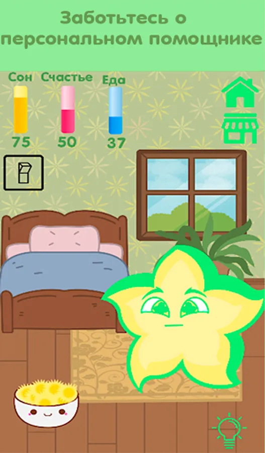 Less Stress will help you reduce your overall anxiety levels. With the help of special activities, you will learn to control anxiety and cope with the first symptoms of panic attacks. The personal assistant carambola Rurik will always be with you. You can pet and feed him. The application has: