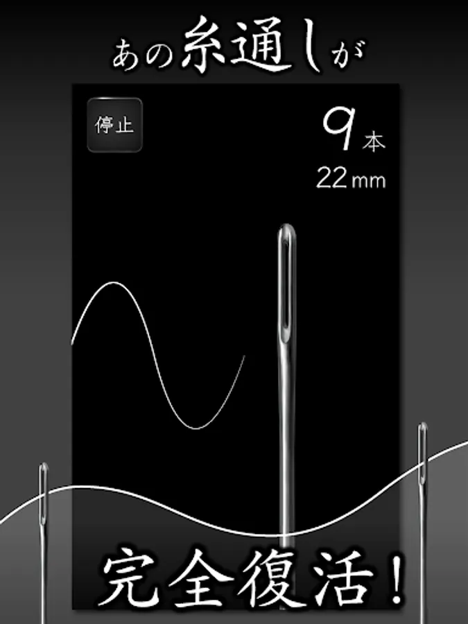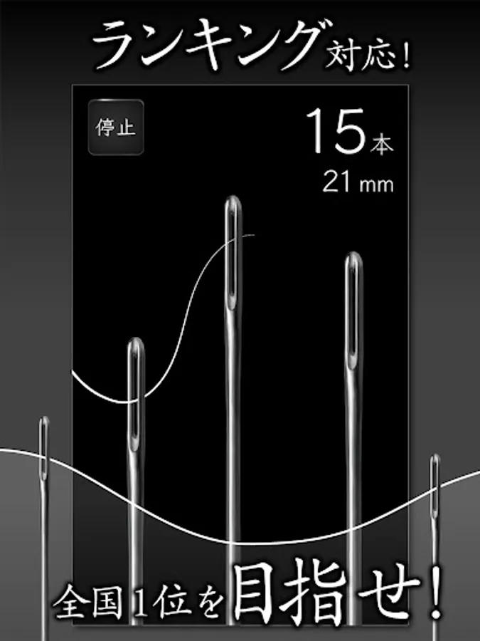 The ultimate time-killing game where you tap the screen to control the thread that rises and pass through the needle holes that are approaching one after another.