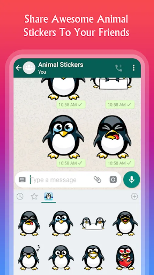 Get app of animal stickers for whatsapp chat and start sharing animal stickers on whatsapp and other social apps.
