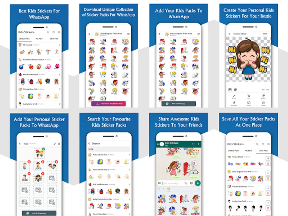 Download the best kids stickers for whatsapp app and enjoy sharing with your friends and family!