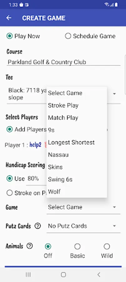 Select from popular golf betting games such as Nassau, Wolf, Swing 6s, 9s (a.k.a. 5-3-1), Animals (wild ones too), Longest-Shortest or play straight up Stroke or Match Play. Simply pick your game, invite your friends, choose teams, and play. GOLFPUTZ™ will do all the in-game calculations!