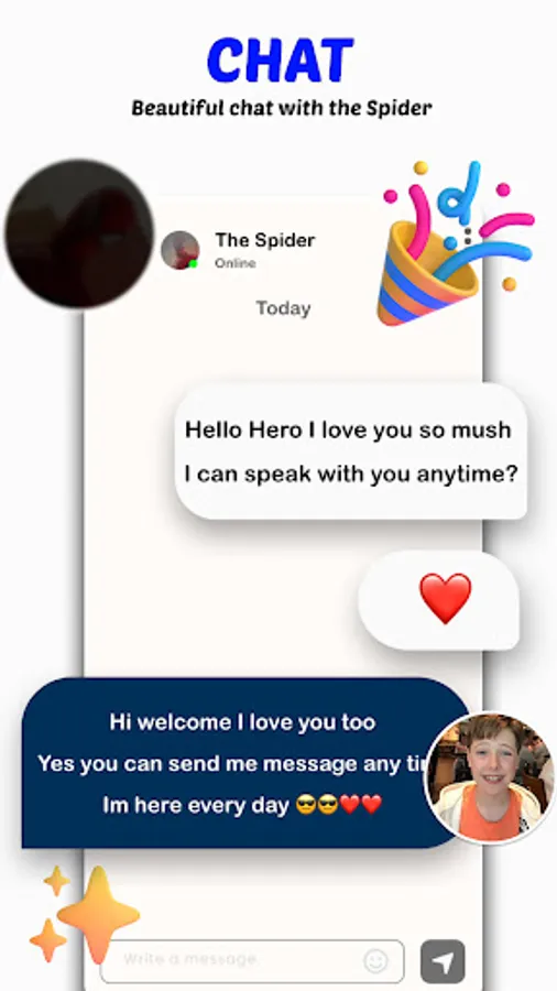 Chat with spider's virtual character, easy and intuitive controls and more than 10 unique levels for chat messenger with your favorite Spider-Battle.