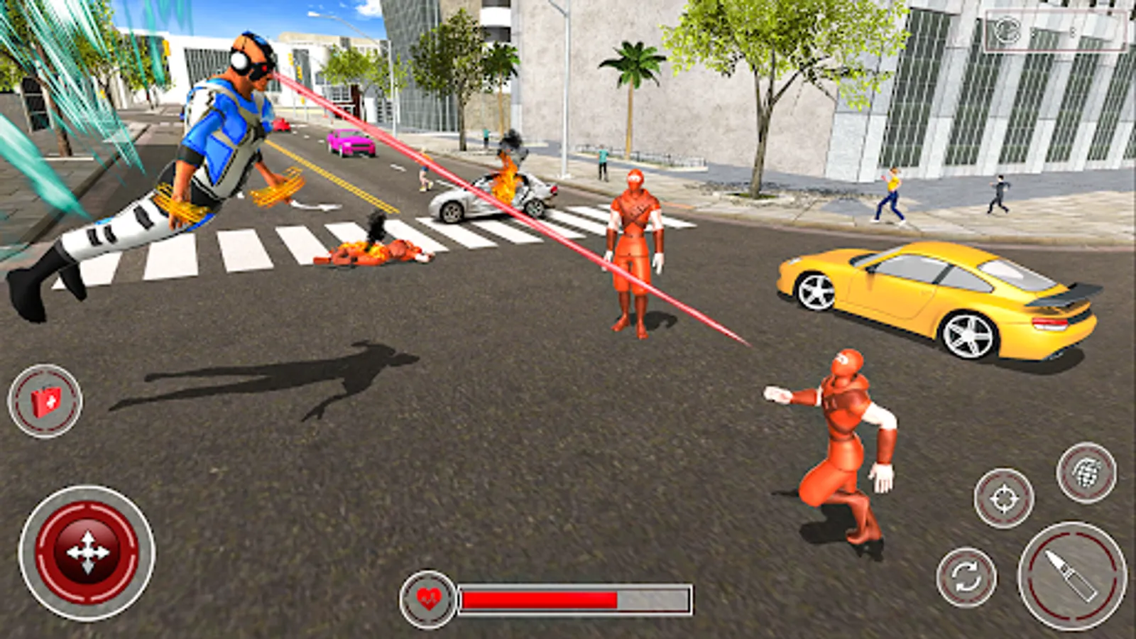 In gangster war game you have to rescue peoples from the criminals where you can experience the real world super power like laser eyes to protect the innocent peoples from the Vegas city criminals as a real rope hero. The super hero doctor is flying around the world for your security and protecting from gangsters. The mafia lord is spreading very fast around the world and your responsibility is to control the crime rate of the city as a crime simulator superhero games. In this super hero rescue game, you will feel like a real hero of peoples by performing your rescue duties. You might like light speed hero games with different abilities of power. Hurry up doctor! There is a patient awaiting for you at the top of building he’s injured, use your flying abilities power to save the patient.