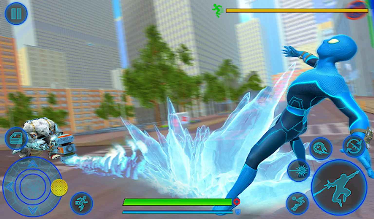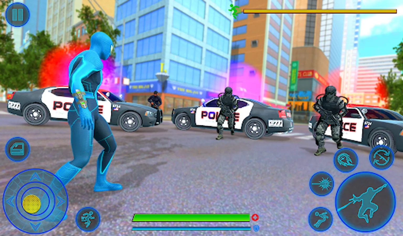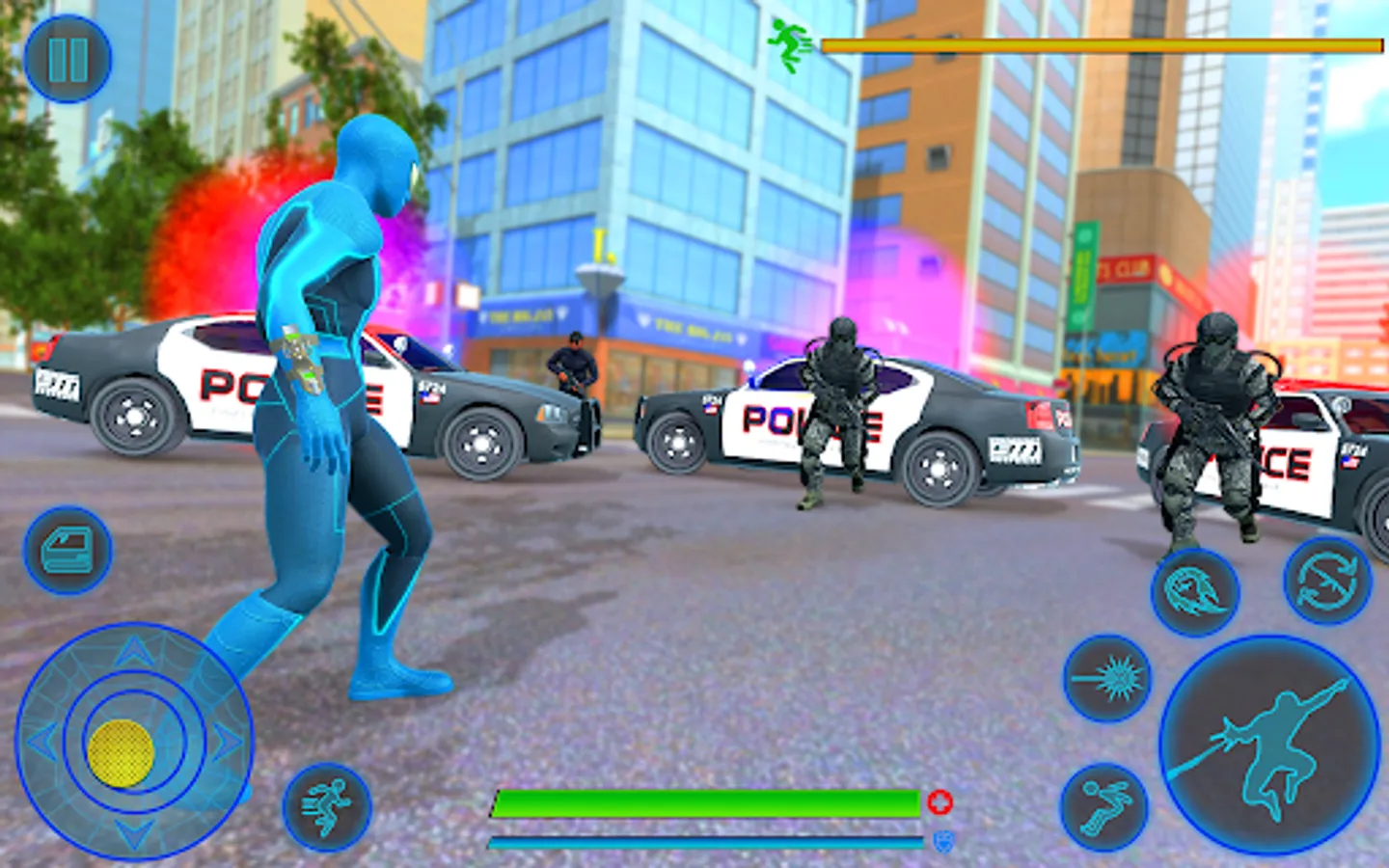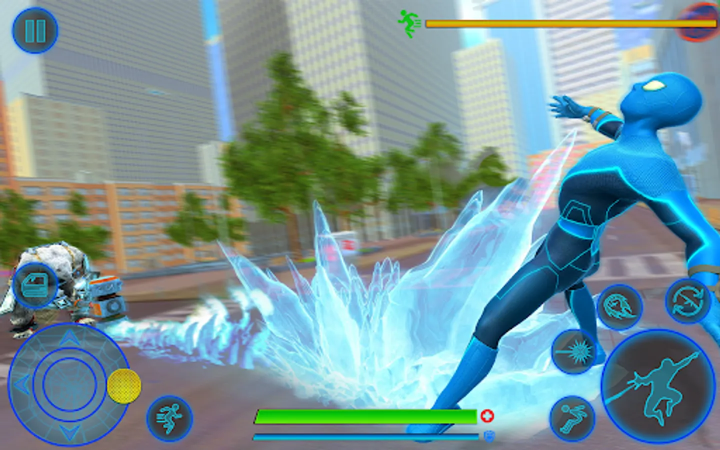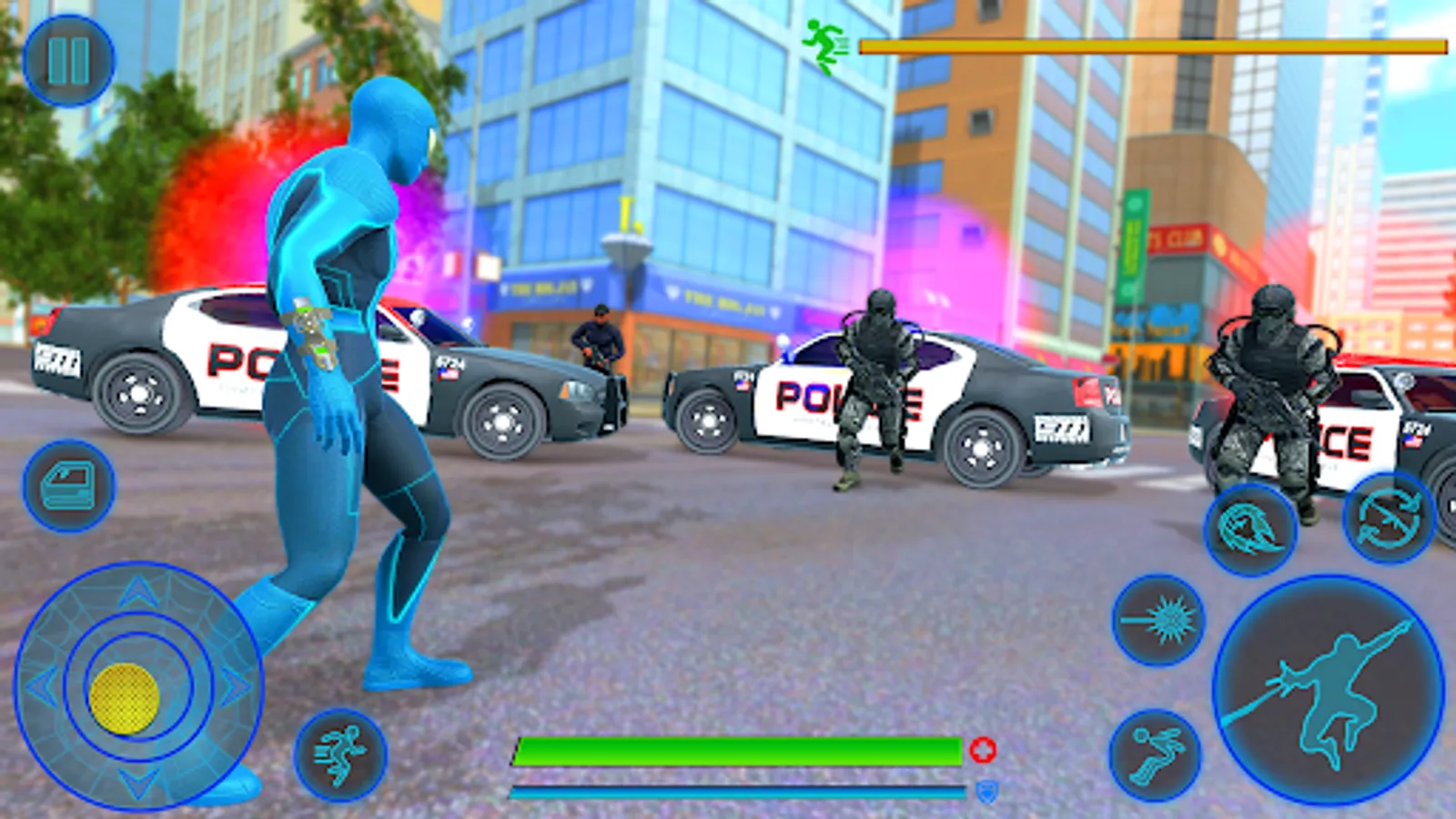Play spider games, and become the best flying rope superhero in a modern city environment & being Flying police hero robot games and spider superhero games in this superhero flying rescue games. Become a master of the spider fighter game as a city rescue mission to save the city from crime gangsters & enemy robots by getting a feel like the Spider fight robot game and flying spider superhero game. You are the real spider hero by playing this spider game because, in this real action spider fight game, the flying superhero has many superhero power abilities like superhuman strength. Spider-fight can fly like superheroes and climb walls and other surfaces. He has the superpower of running fast like a flash hero of this spider-man game.