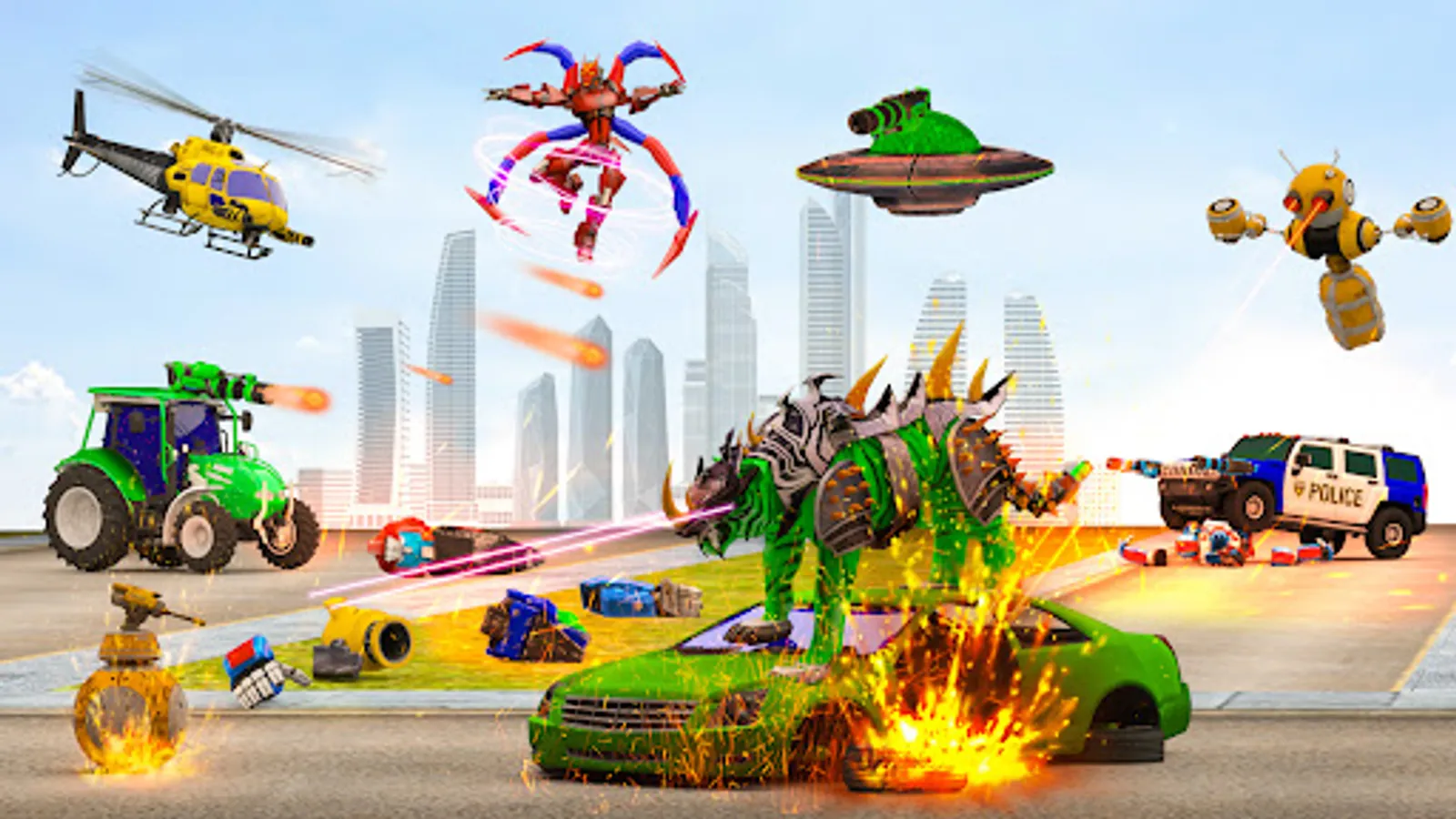 In this game, warriors, war robots, and police robots battle vie the grand gangsters robot during a real multi robot transformation battle. All levels of the Spider robot game don't seem to be simple to complete, thus make preparations to relish those thrilling action mission of multi robot car game and develop your robot shooting skills during this spider robot car game. People hope that flying police robot superheroes fight will get them remove evil robots that wish to destroy the battle town. You want to got to take off of earliest robot car game, robot car games or flying robot games and be a part of the main realistic spider robot rope hero superhero fighting game 2021. During this open world games, break your ancient idea of robot transformation and car flying spider robot games begin enjoying spider robot hero games that having complete abilities and superpowers like rope hero. Accept this open challenge to be a spider robot car game to form the city free from flying robot war games. Fight with spider hero police robot warriors and numerous bosses on the criminal robot man.
