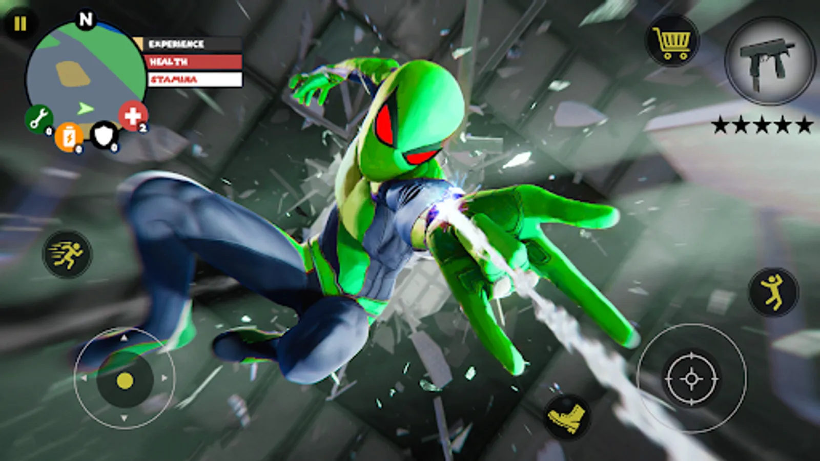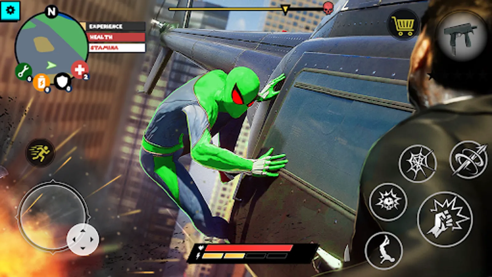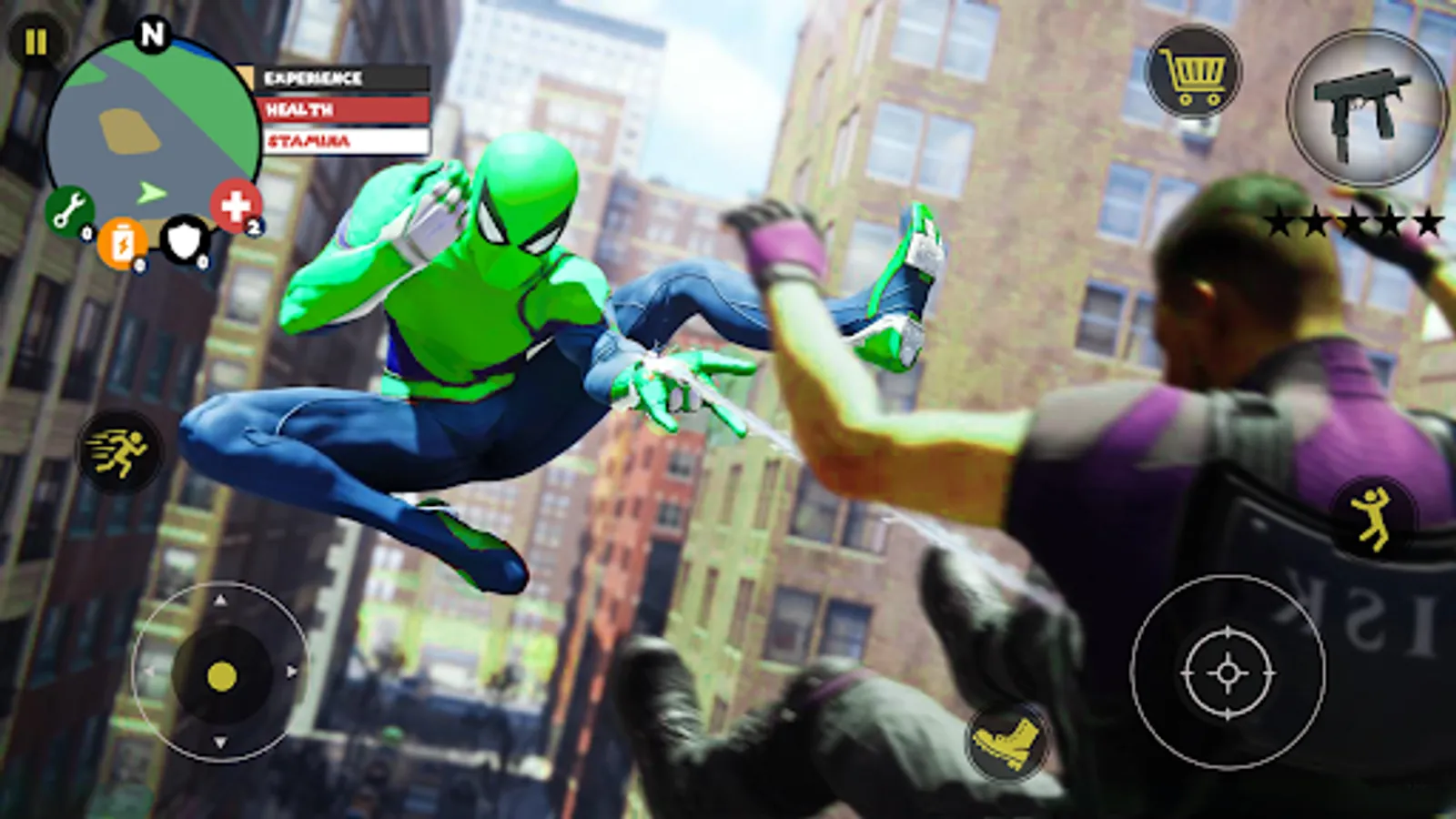 Intense super hero action combination-fused Gangster Vegas crime fighting by shooting webs at bullet firing opponents and punching all your enemies in this cool crime filled thriller crime simulator game.