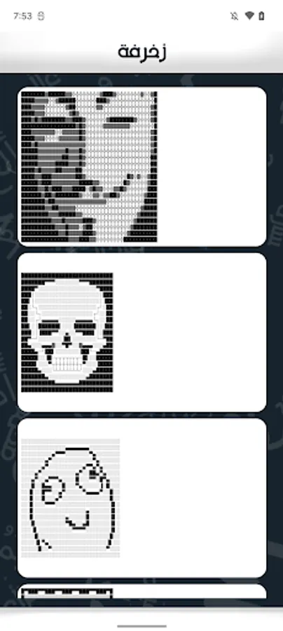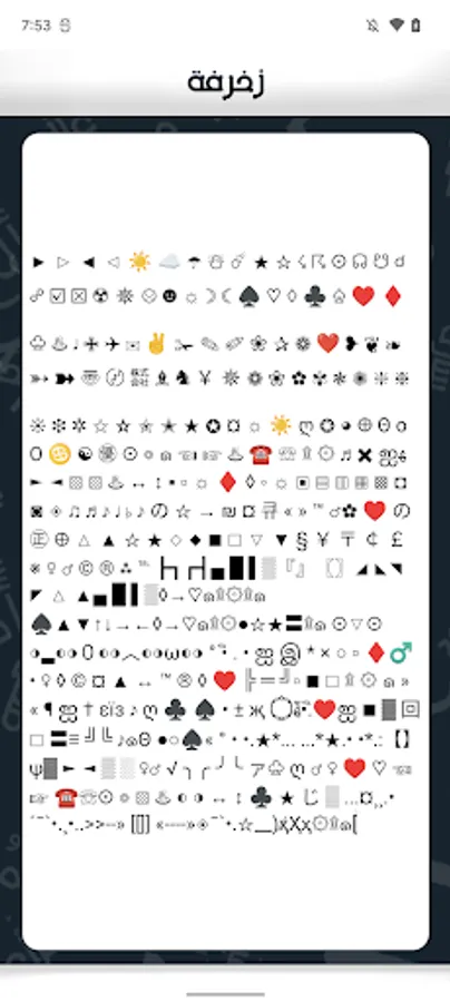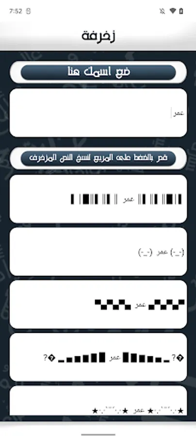 How to use: then enter the first text of the box will be decorated box below beautiful and different forms, just click on the text you want to copy and will copy.