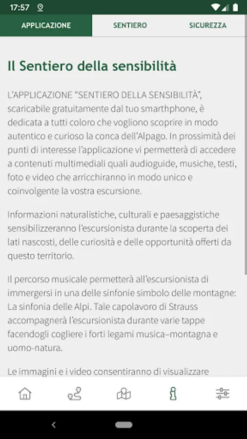 The "PATH OF SENSITIVITY" APPLICATION, downloadable for free from your smartphone, is dedicated to all those who want to discover the Alpago basin in an authentic and curious way. Near the points of interest, the application will allow you to access multimedia content such as audio guides, music, texts, photos and videos that will enrich your excursion in a unique and engaging way.