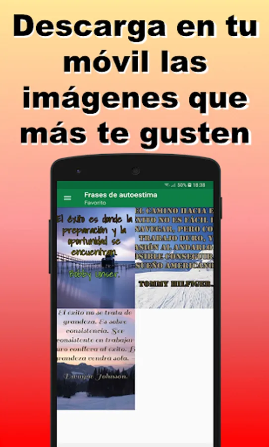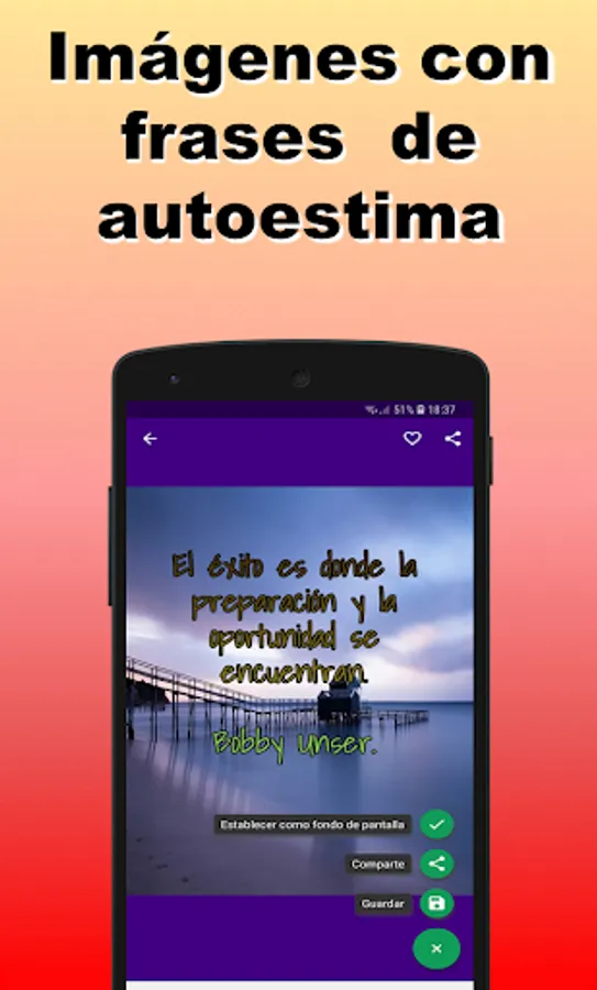 This application has hundreds of images with original self-esteem phrases to be able to send a different one every day. We are also adding new content often to always have the best phrases and images to share on WhatsApp.