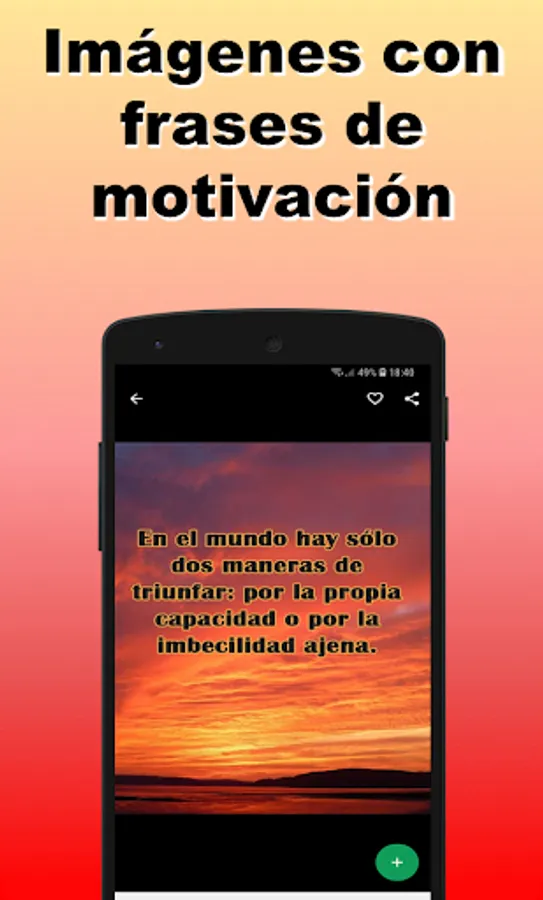 This application has hundreds of images with original motivational phrases to be able to send several different ones every day. We are also adding new content often to always have the best phrases and images to share on WhatsApp.
