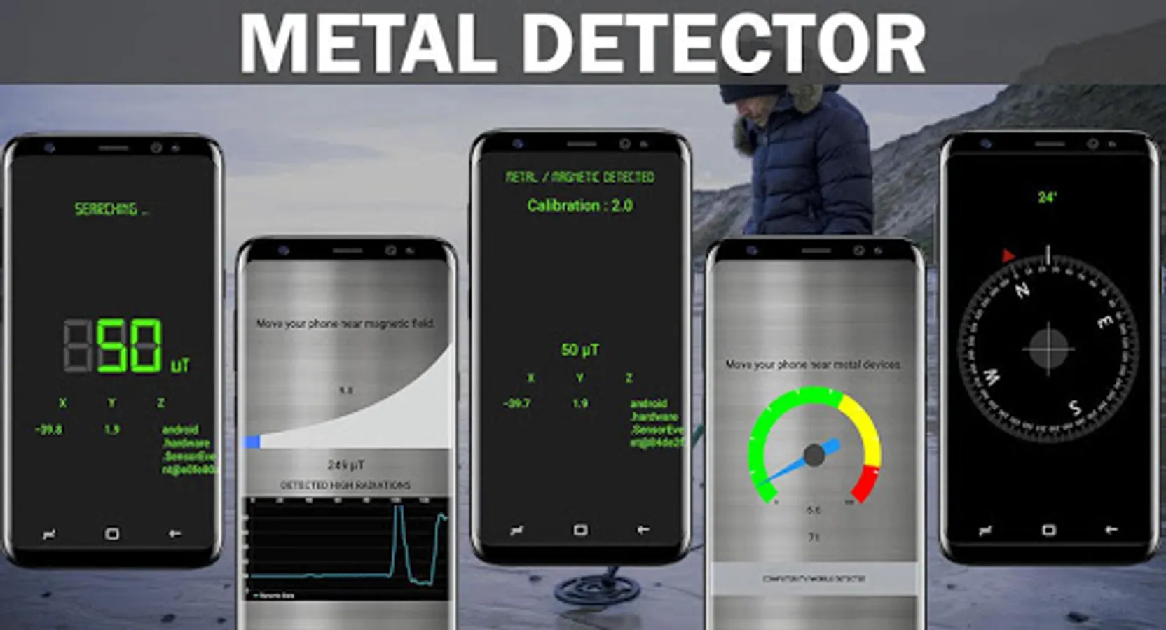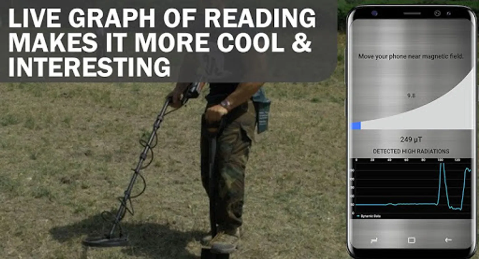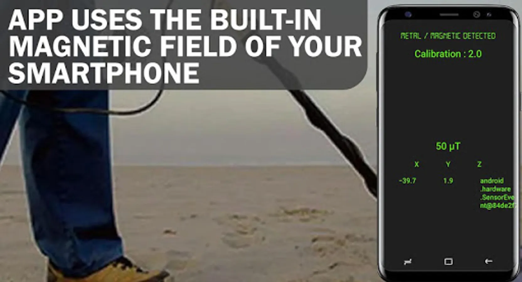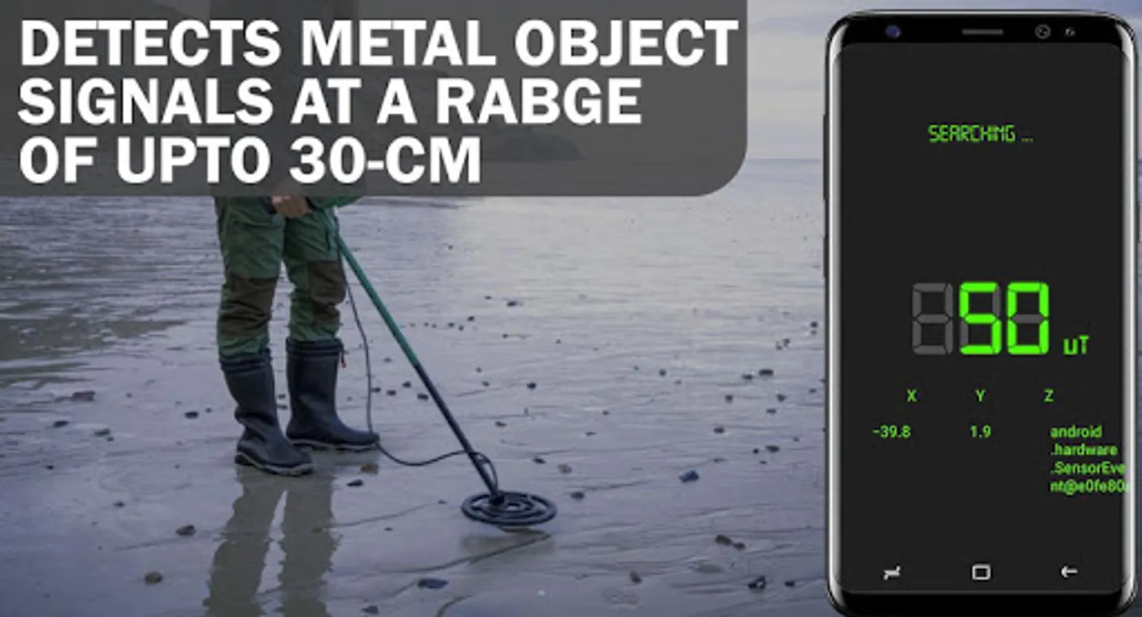 METAL DETECTOR: FREE DETECTOR is an amazing application that can detect easily the presence of any metal object nearby by measuring the Magnetic Field value. This useful app uses the built-in magnetic sensor of your smartphone and shows magnetic field level in μT (microtesla). We know that magnetic field level naturally (EMF) is about 59μT (micro tesla) or 590 mG (milli gauss) and 1μT = 10mG.