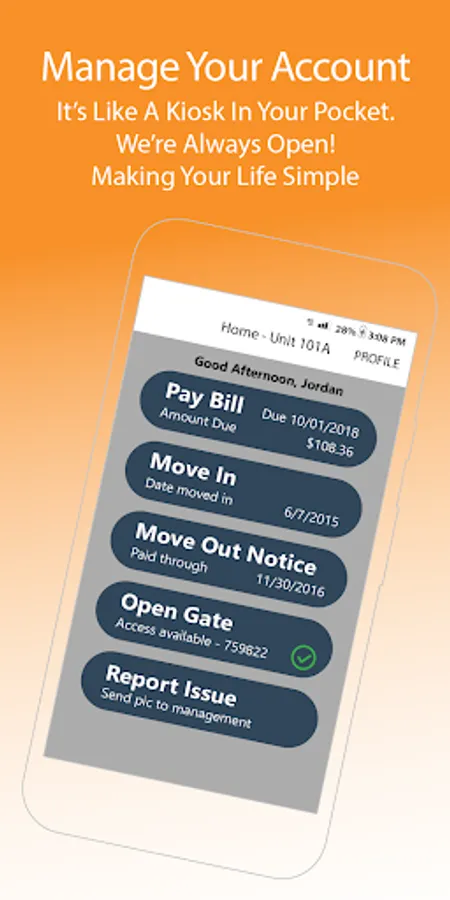 - Certain locations allow rentals to be performed from this app. You can pay for the unit, easily sign your lease agreement and receive a gate code to obtain access all from our app.
