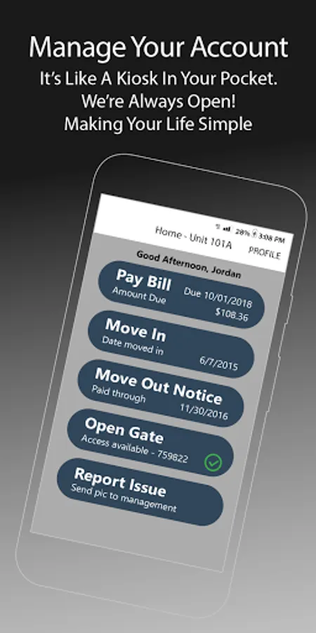 - Certain locations allow rentals to be performed from this app. You can pay for the unit, easily sign your lease agreement and receive a gate code to obtain access all from our app.