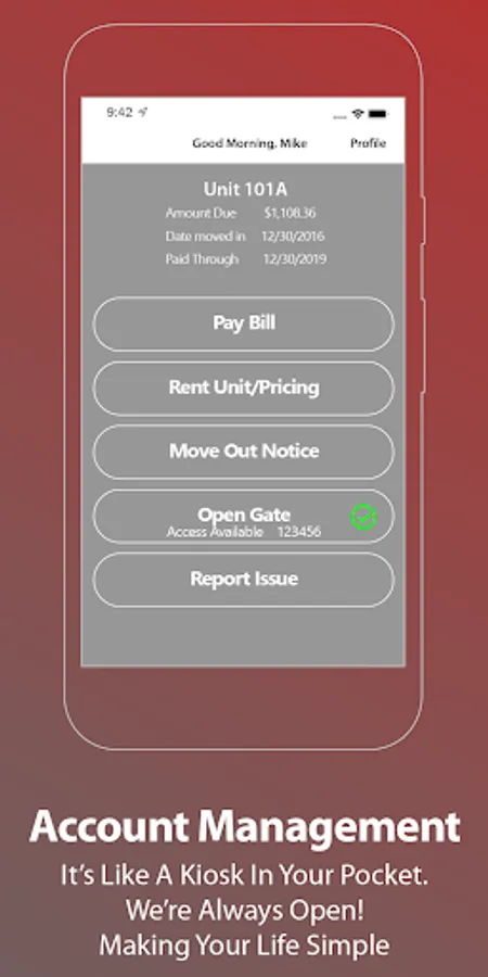 The "Self Storage Management of California" App makes it easy to check your balance, send rent payments, rent units, and contact our front office. Anytime. Anywhere.