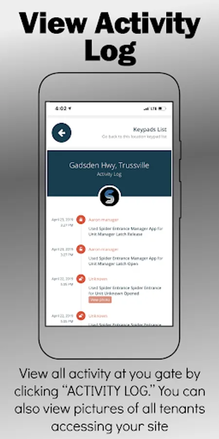 The SpiderENTRY management app is an amazing and extremely helpful piece of technology, used in the self storage industry today. This app will allow self storage managers and owners to access not only their gates from anywhere but it will also allow them to see an activity logs of every tenant. Some SpiderENTRY keypads even allow you to view a picture of the tenants that access the keypads. Check out our website at www.SpiderENTRY.com