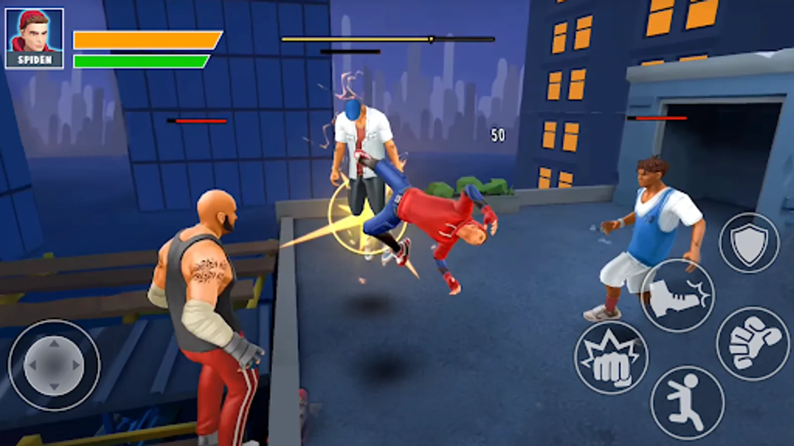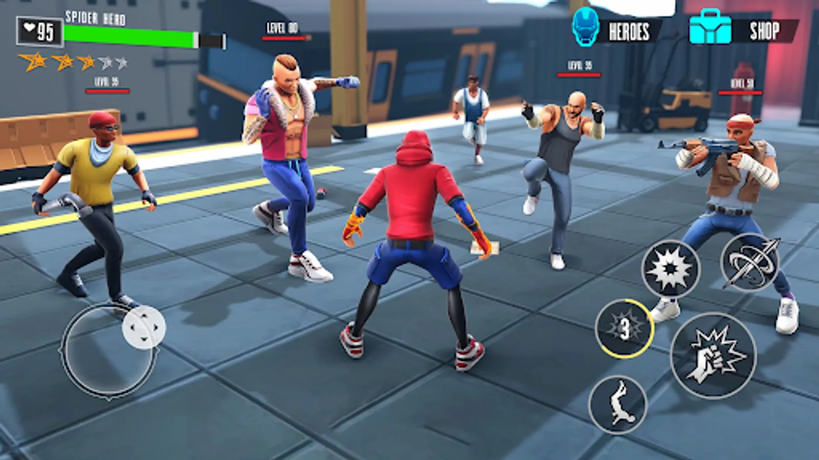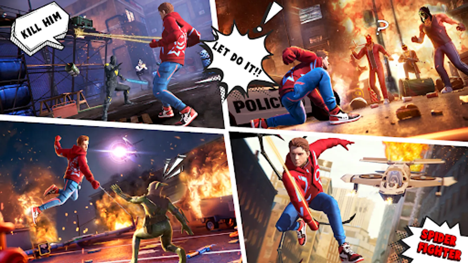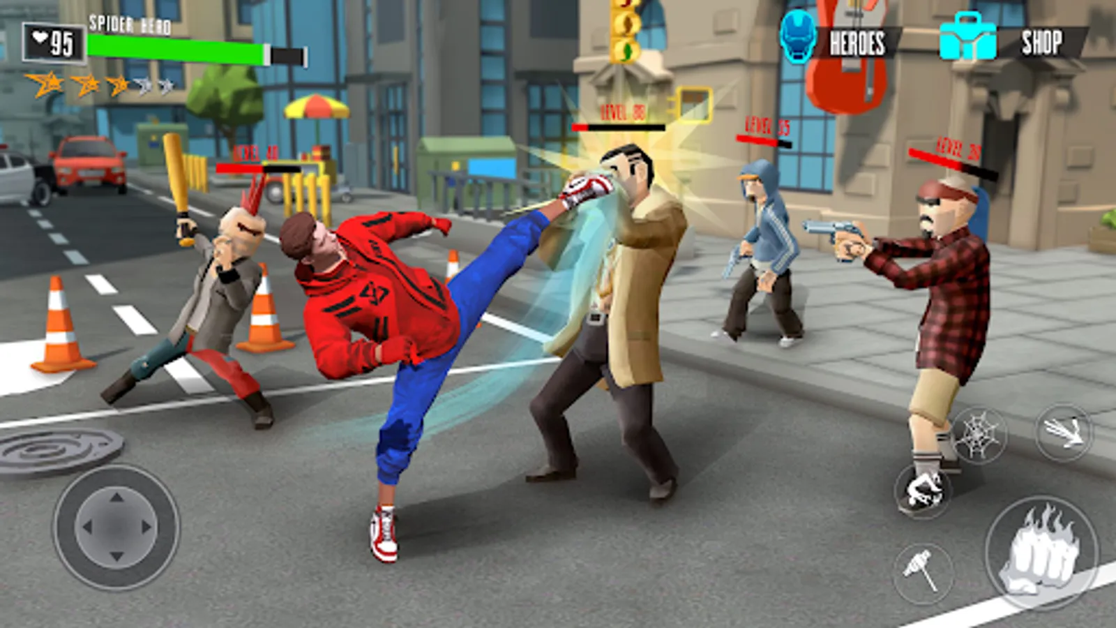 This fighting game has been made for fans of spider heroes and other superheroes. You will transform into a superhero to save your city in full 3D graphics like an AAA game. Act unpredictably with your fast-flying spider attack, defeat rivals and gain experience to the next spider-hero level. Cruel crime lords attacked the city, however, police and army forces are unable to fight gangster mafia bosses, so if you are a justice warrior you must defeat the crime gangsters.