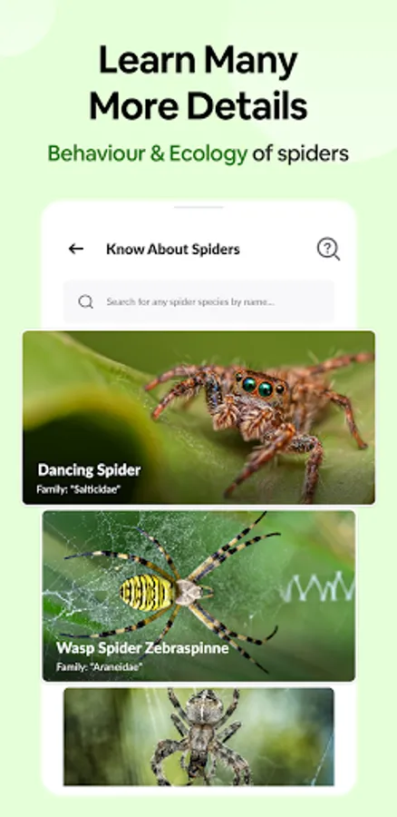 Identify Spider: Bug Finder isn't just about identifying bugs; it's about learning and exploration. With detailed descriptions, high-quality images, and even audio clips, you'll gain a deeper understanding of these fascinating creatures that share our world.